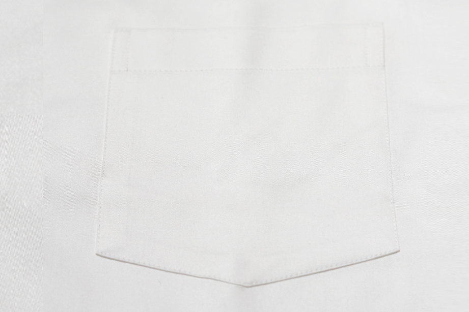 左胸单帖胸兜,做工精致,偶尔可以装一点儿小物件。