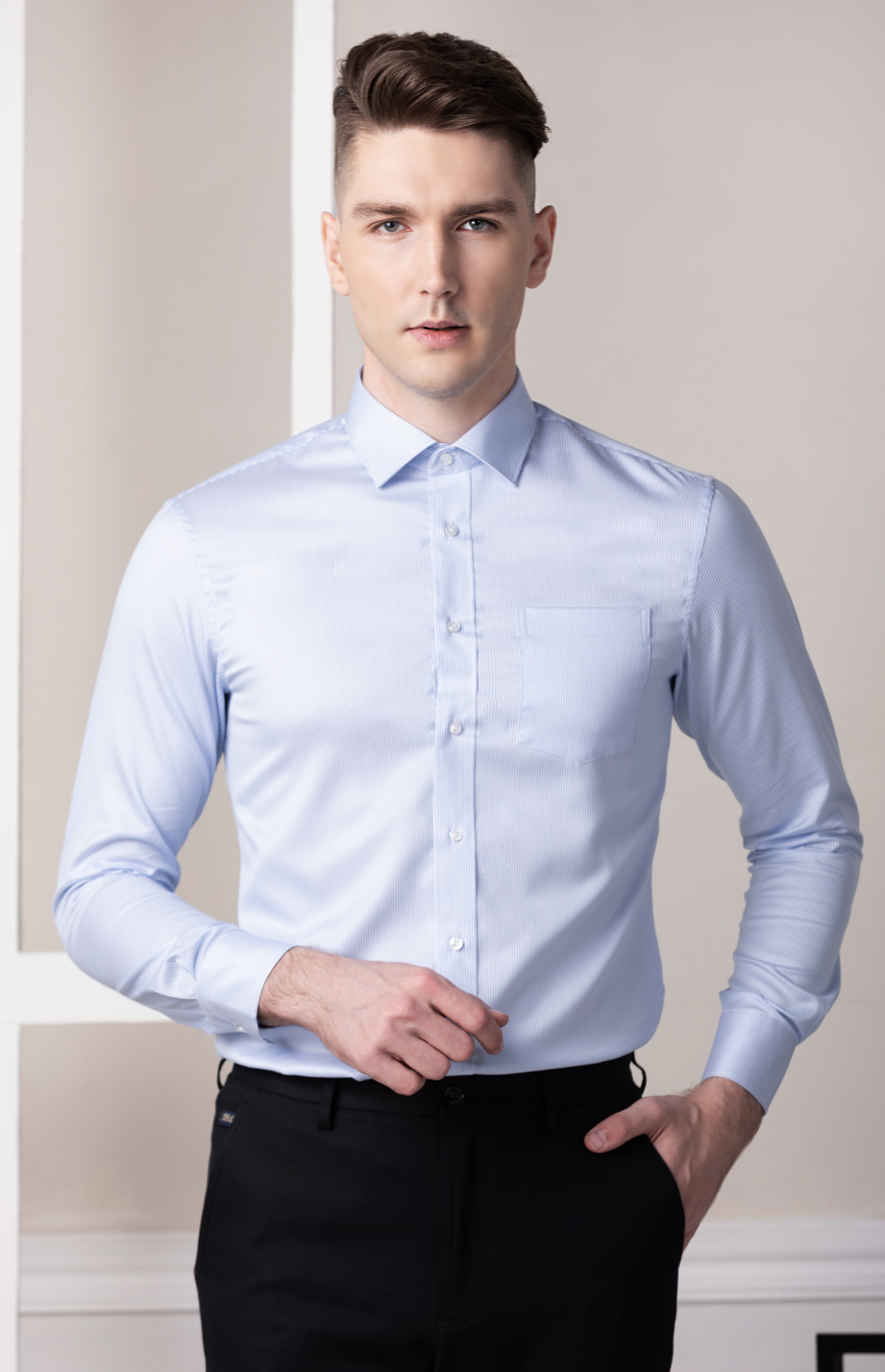 | 款名: | 蓝白条100支纯棉商务长袖衬衫 | |||