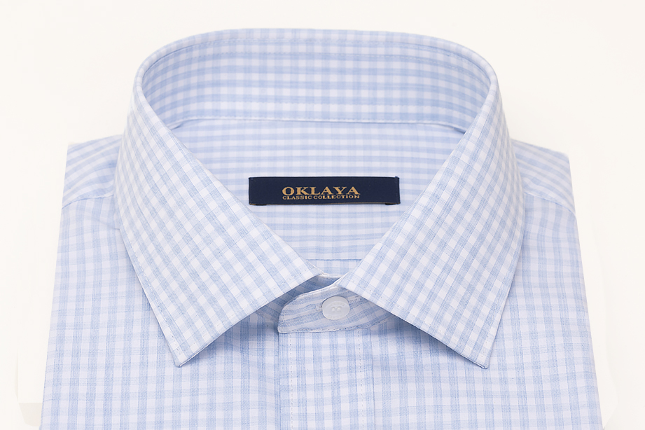 | 款名: | 浅蓝白格液氨整理纯棉商务长袖衬衫 | |||