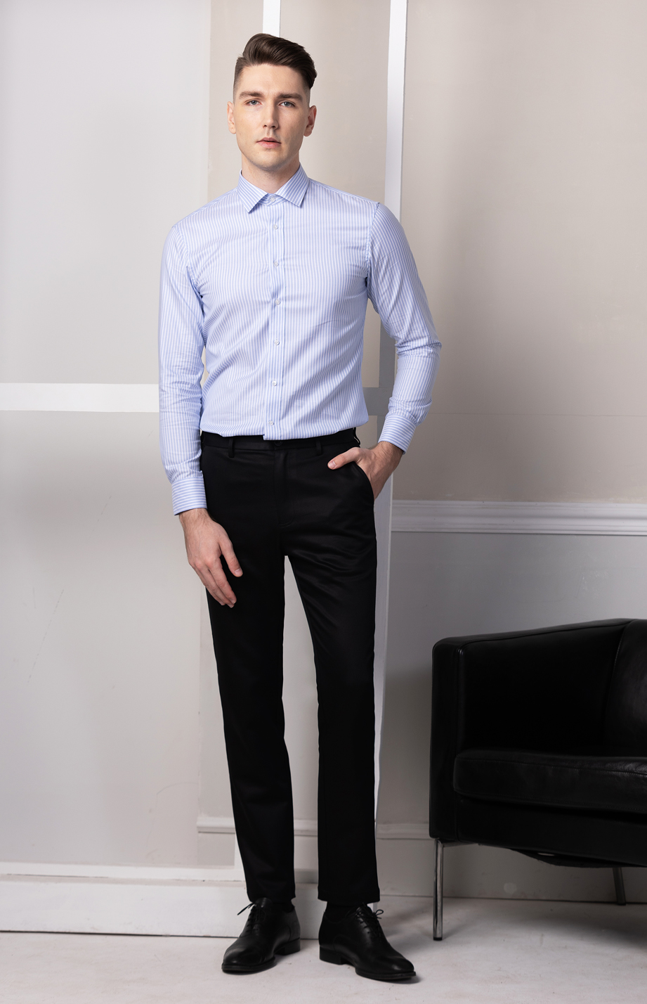 | 款名: | 蓝白条纹120支纯棉商务长袖衬衫 | |||||