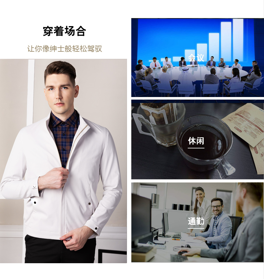 | 款名: | 白色涤纶立领商务休闲茄克 | |||||
