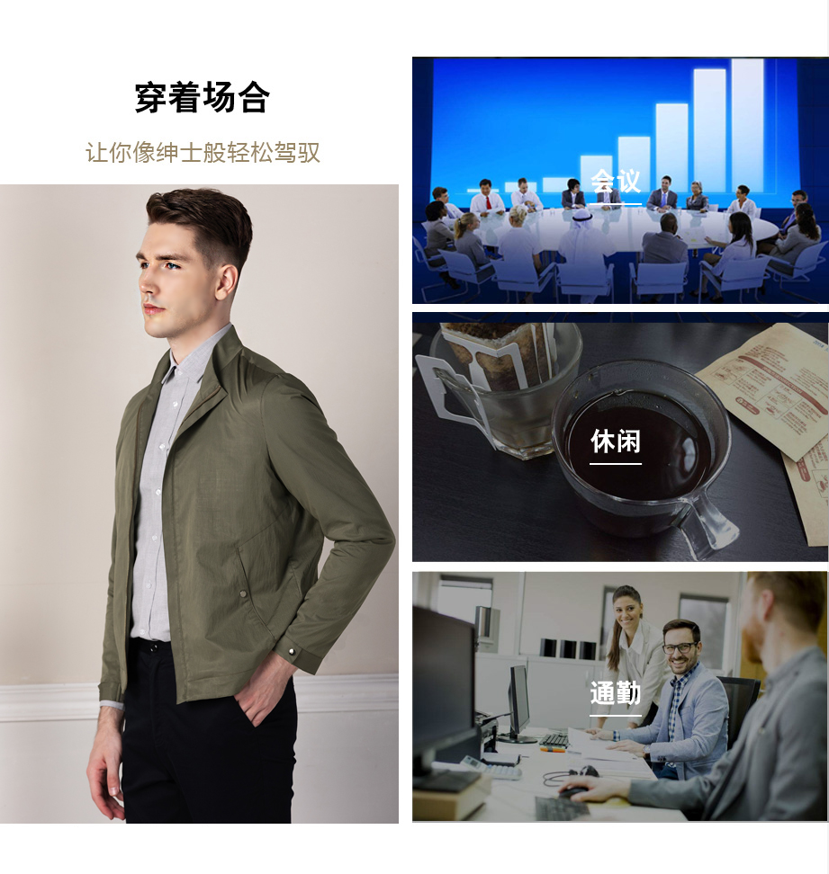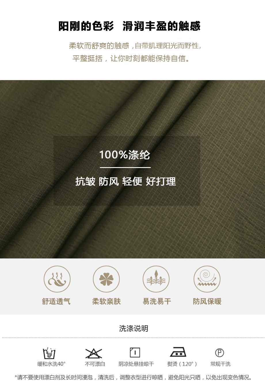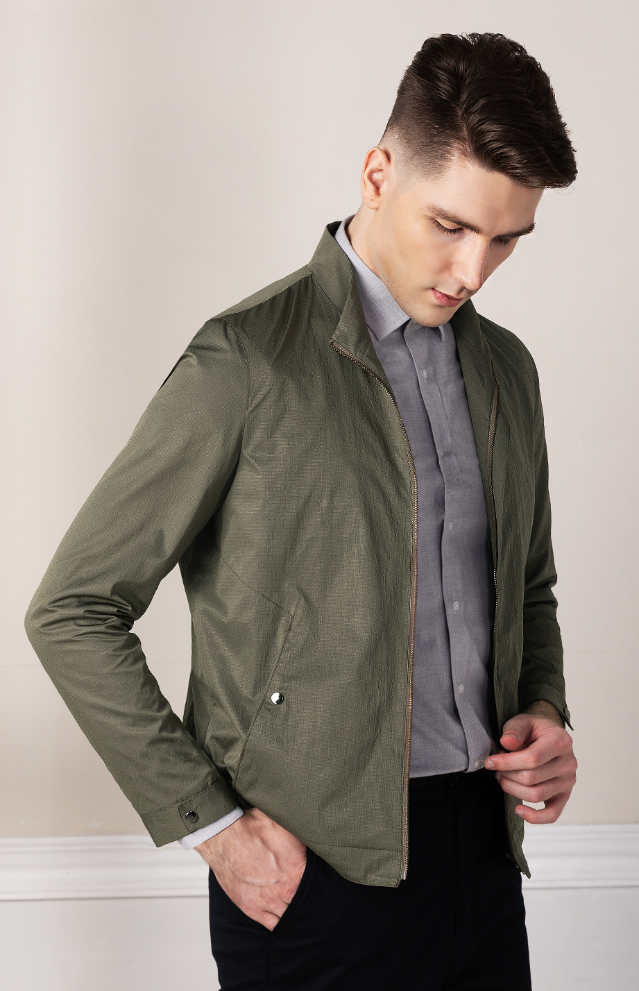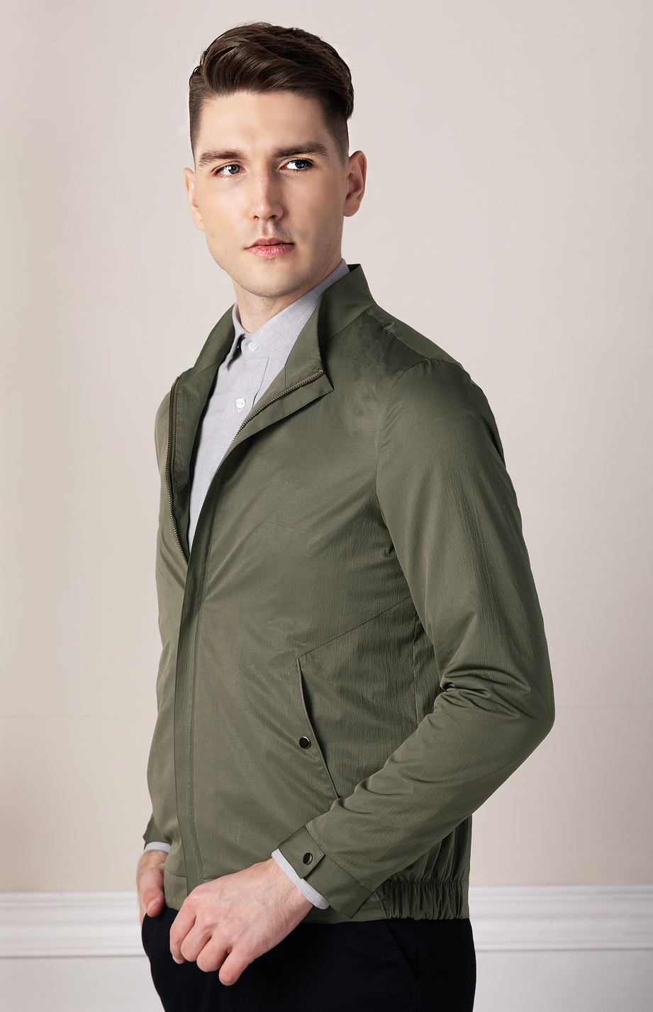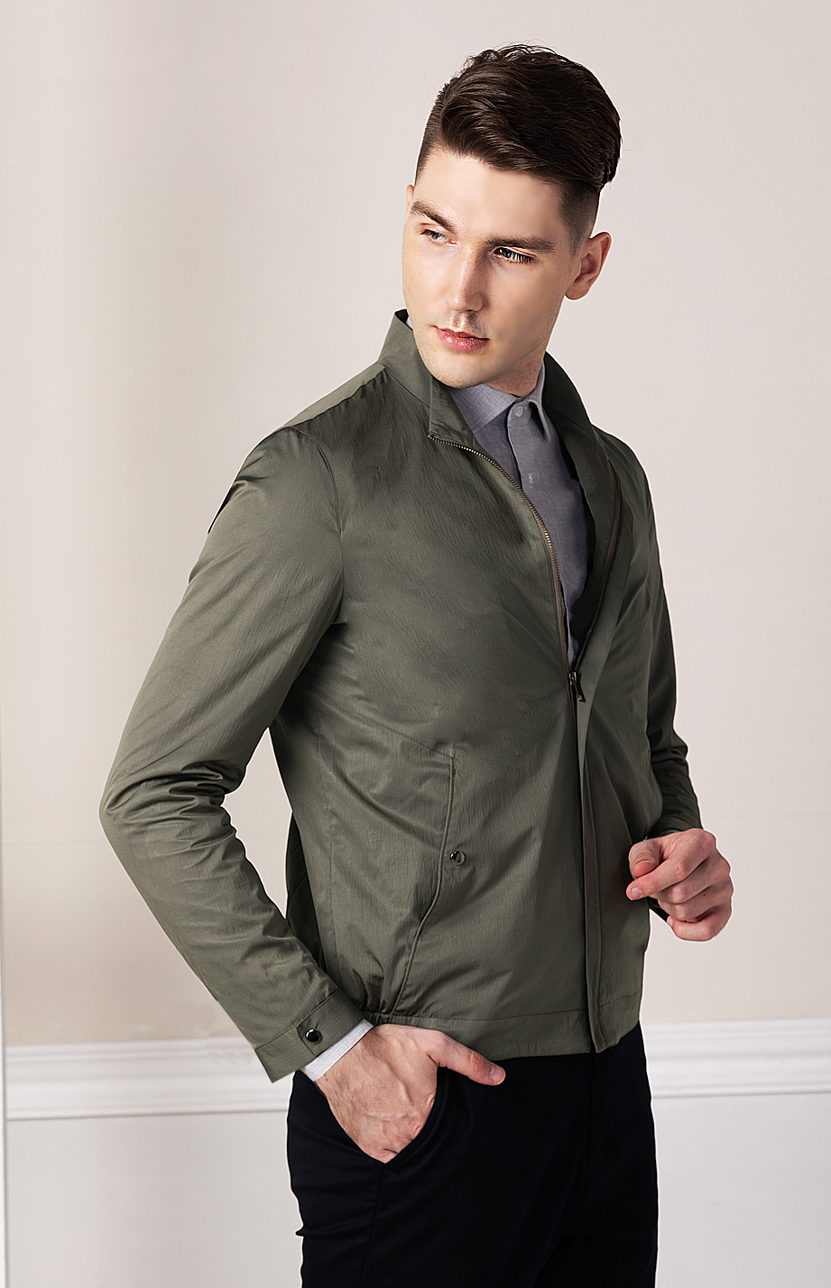 | 款名: | 军绿色暗格涤纶立领商务休闲茄克 | |||||