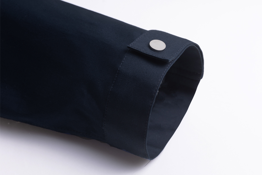 拼接式袖头,袖头精致四合扣可调节松紧。