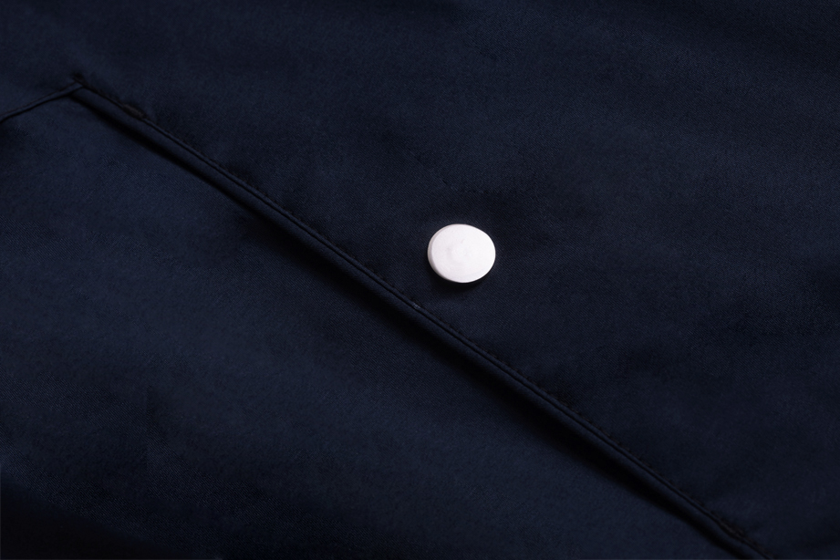 采用斜插式口袋设计,简约经典,兜中间加四合扣实用、方便。