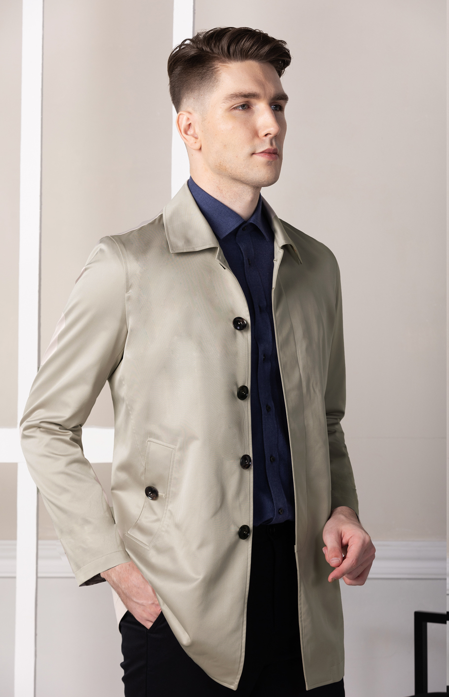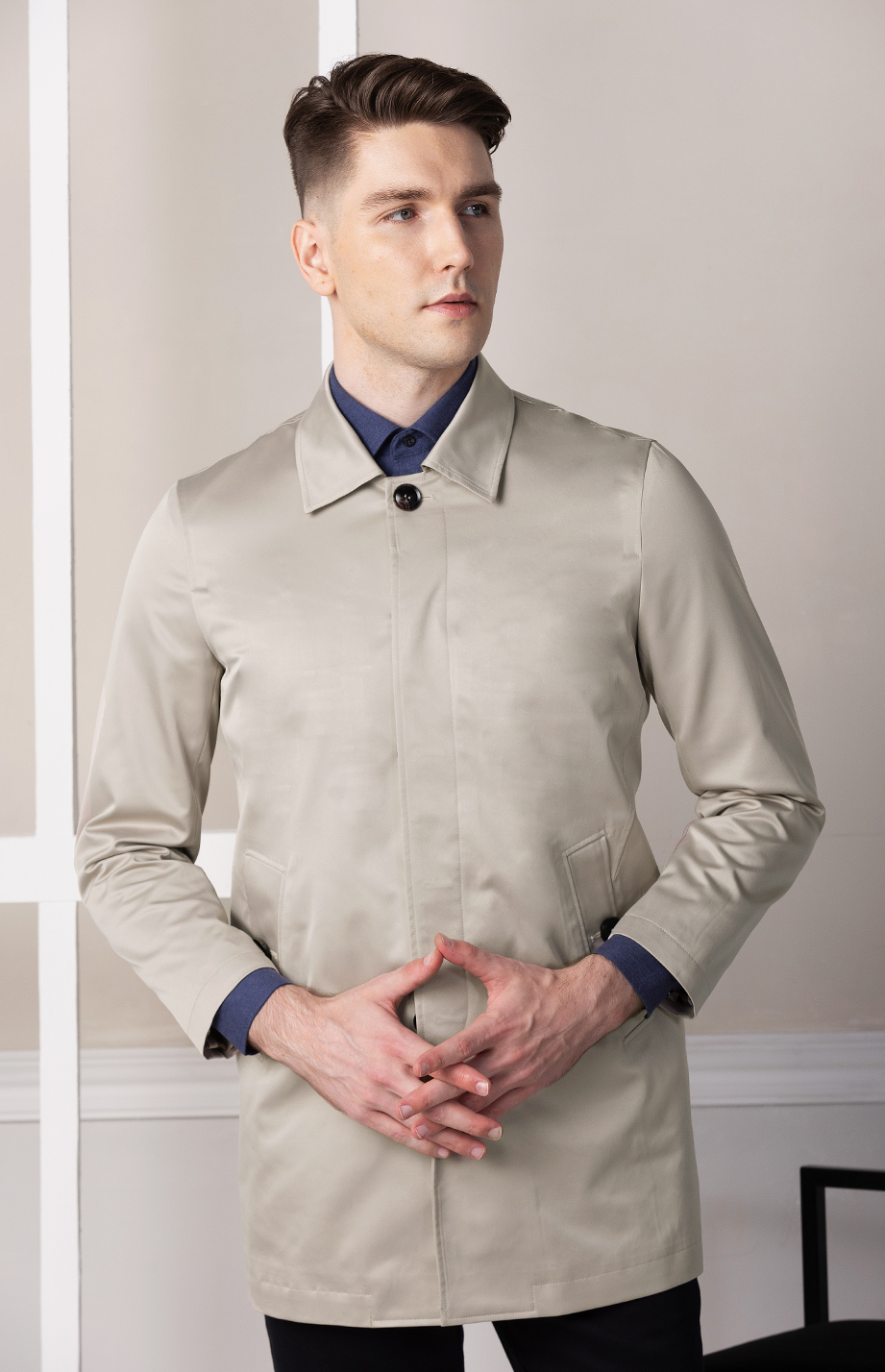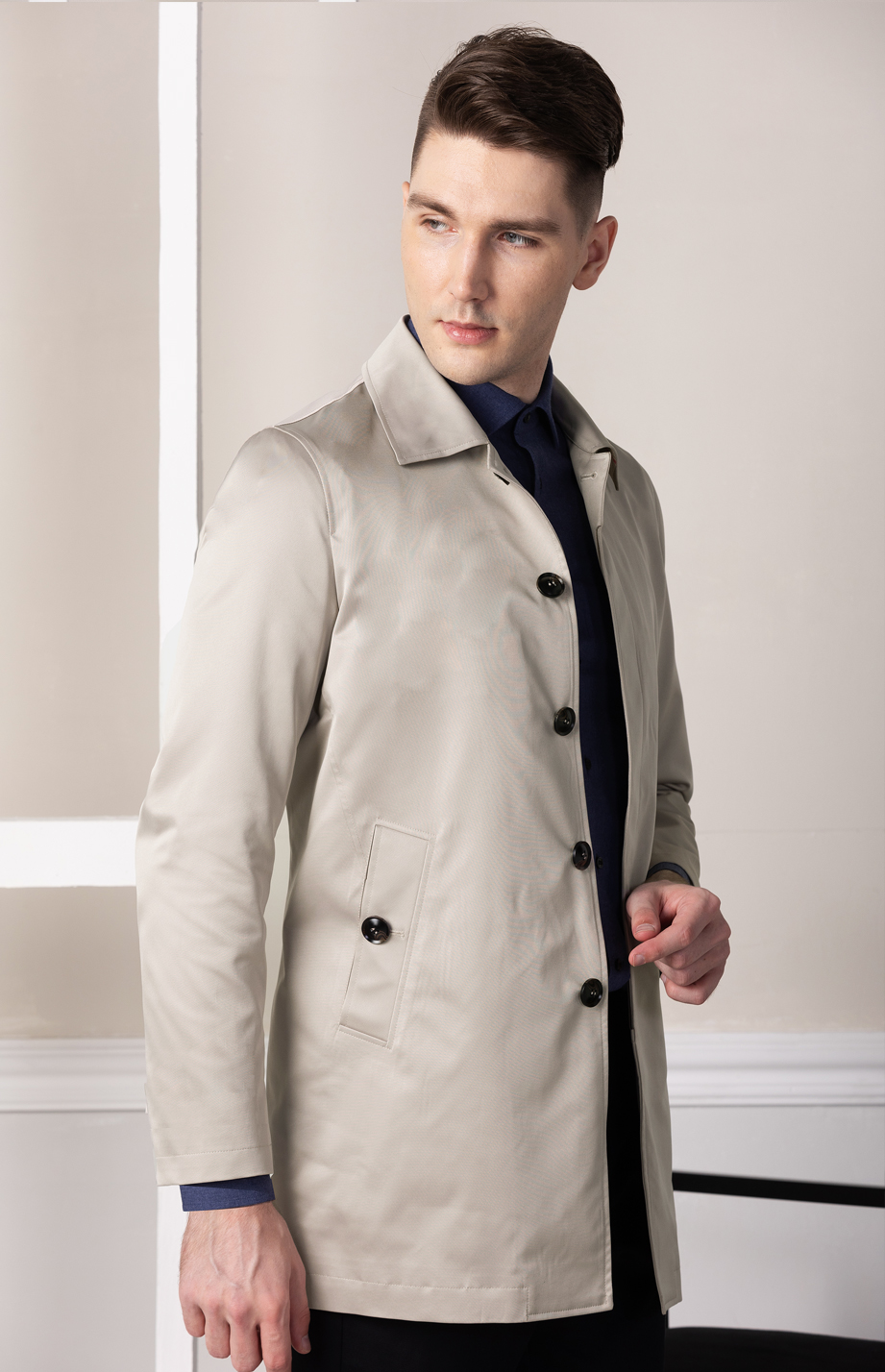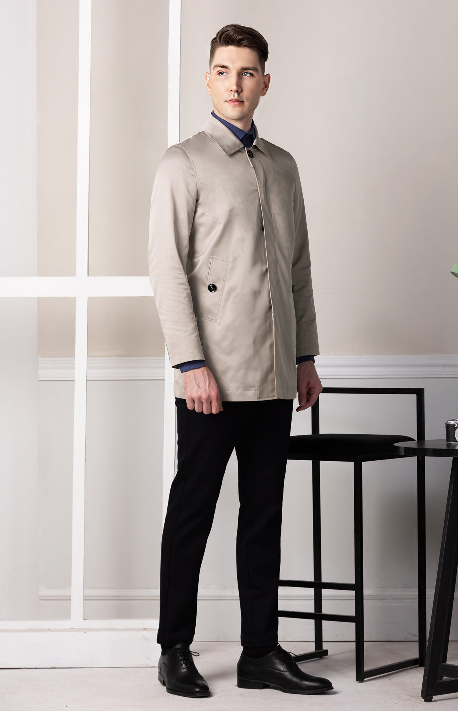 | 款名: | 浅卡其色涤纶翻领风衣 | |||||