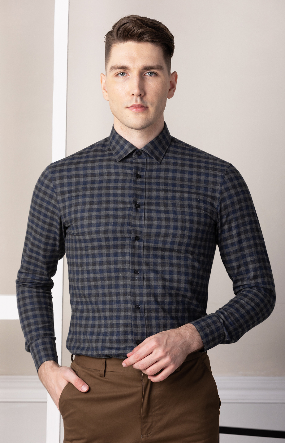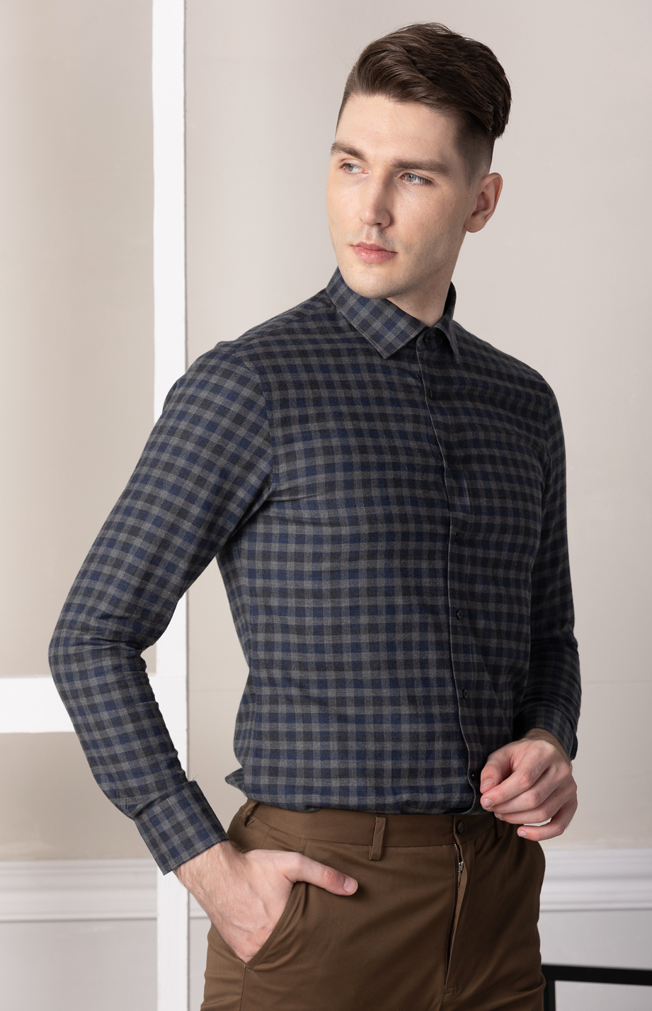 | 款名: | 灰蓝相间小格纯棉磨毛长袖衬衫 | |||