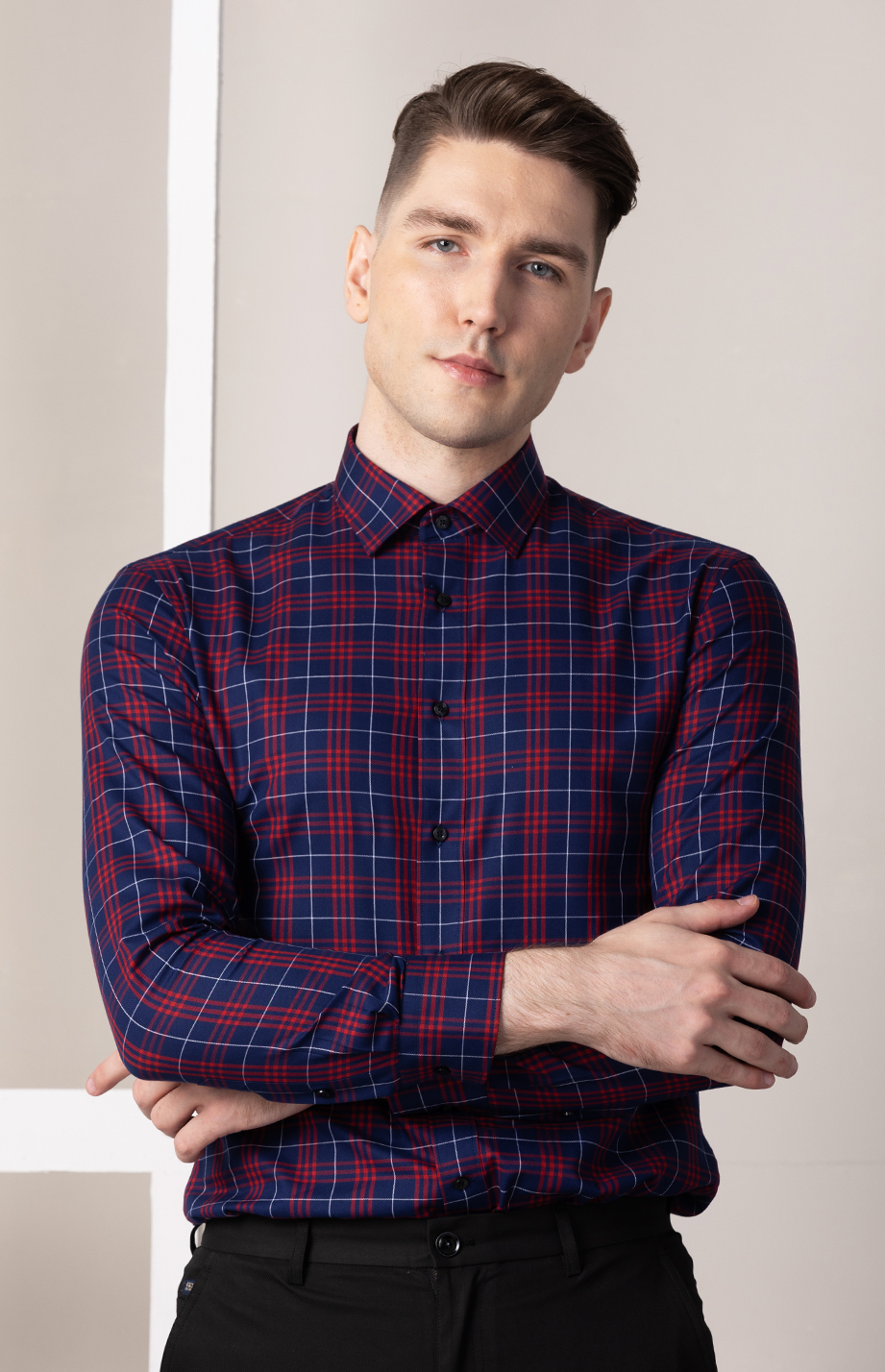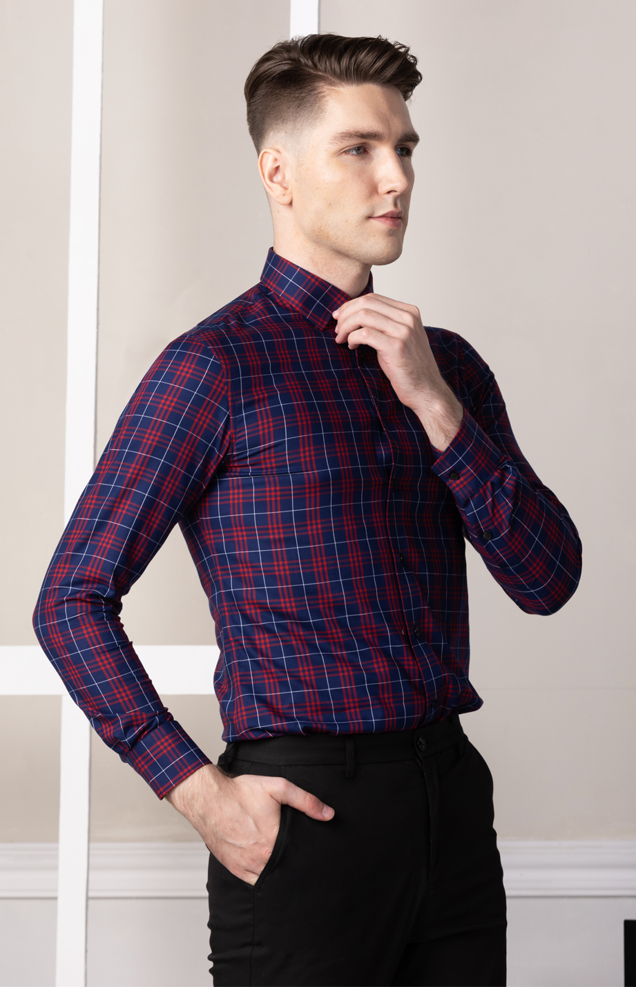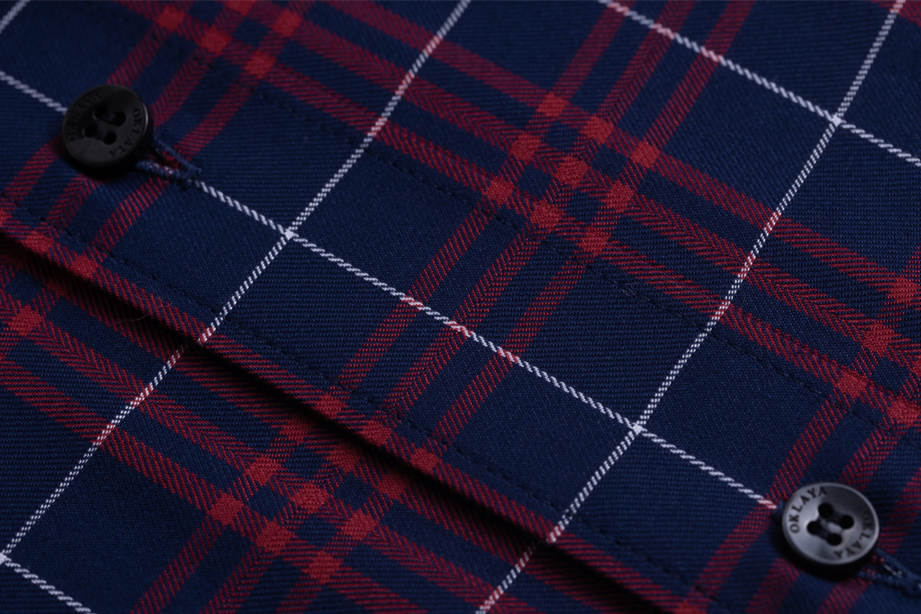 | 款名: | 红蓝白格天丝聚酯纤维混纺长袖衬衫 | |||||