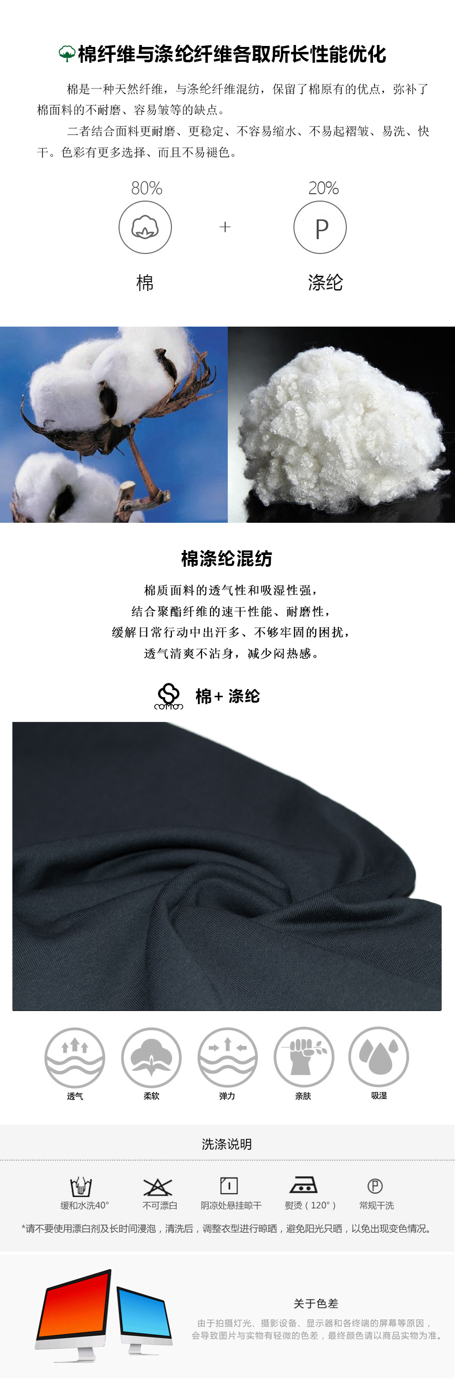 | 面料: | 80%棉20%涤纶 | 柔软: |