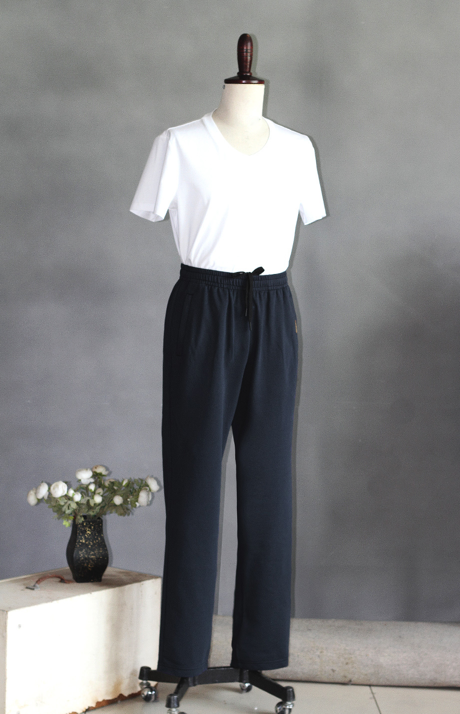 | 款名: | 深蓝色针织棉涤散口春夏运动裤 | |||