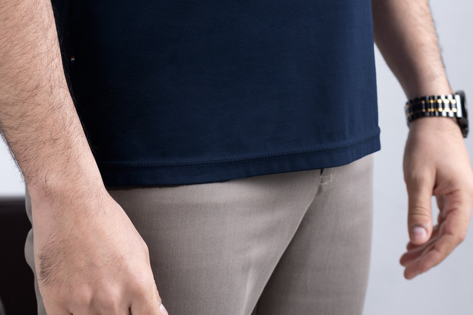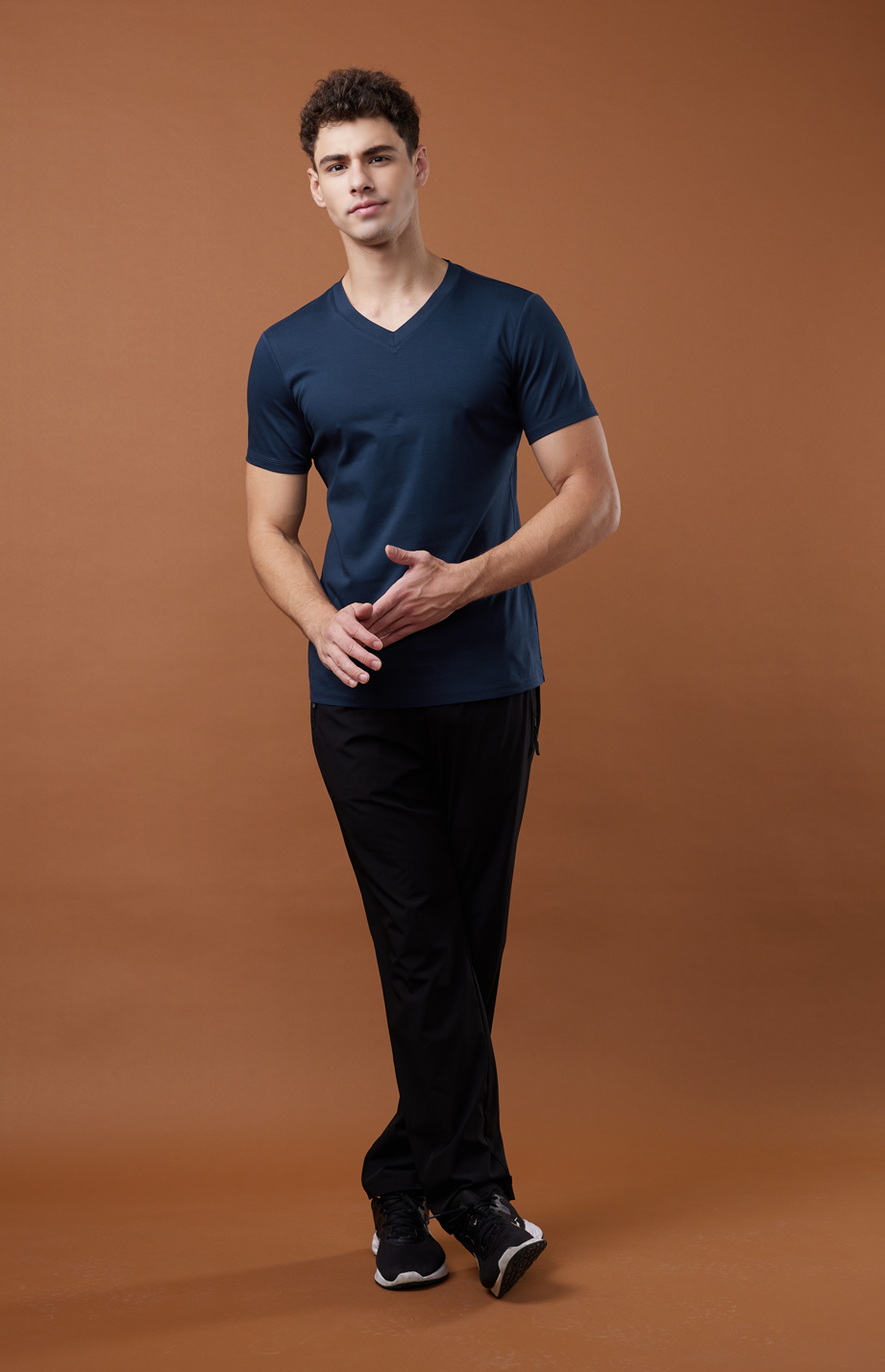 | 款名: | 深蓝高纱支丝光纯棉短袖V领商务T恤 | |||||