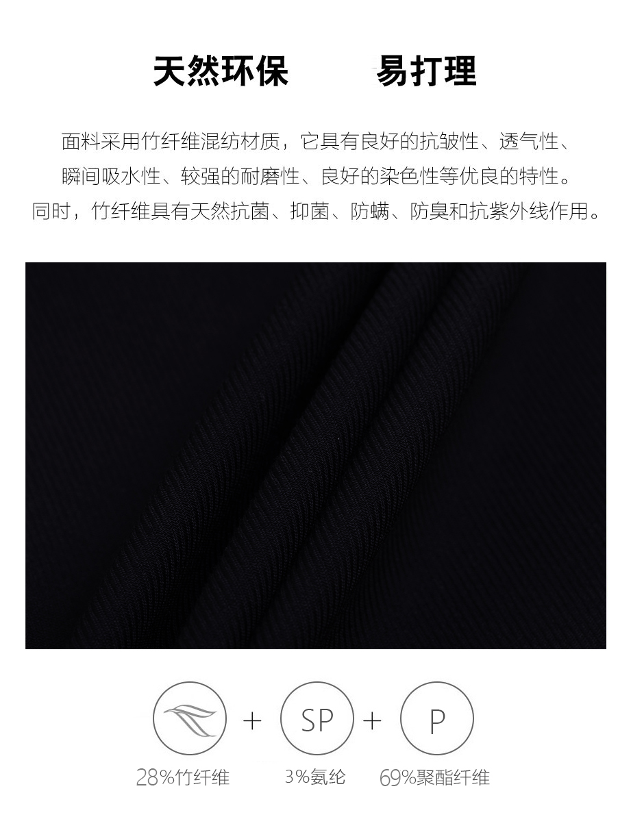 | 面料: | 28%竹纤维69%聚酯纤维3%氨纶 | |||