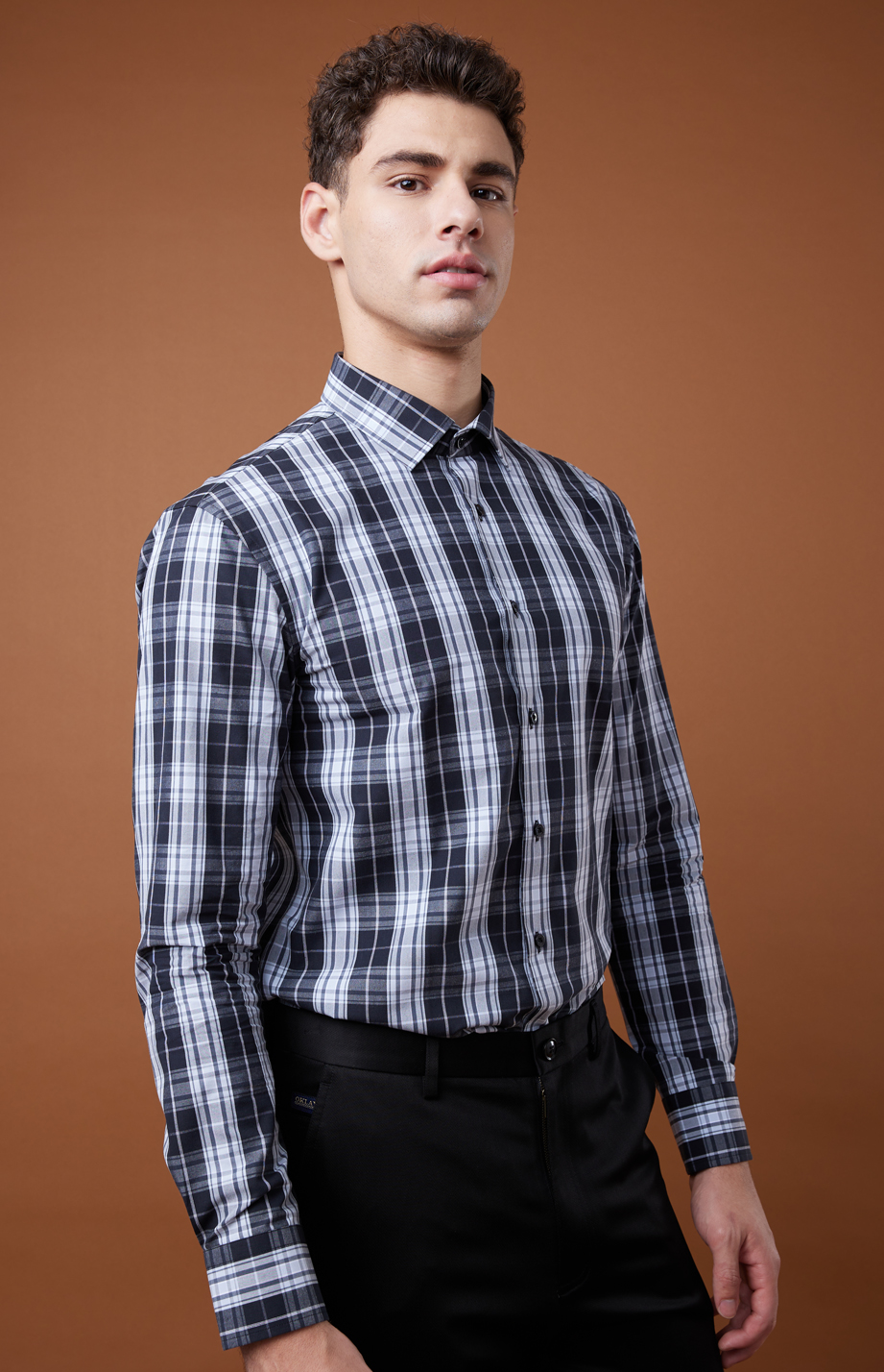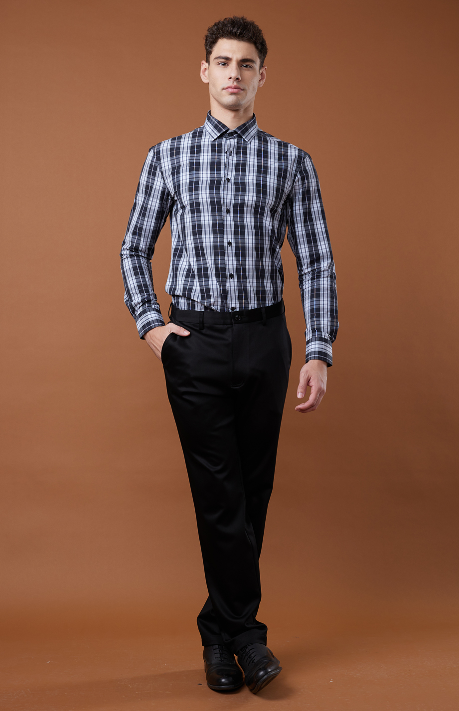 | 款名: | 黑色浅蓝相间格子纯棉磨毛长袖衬衫 | |||
