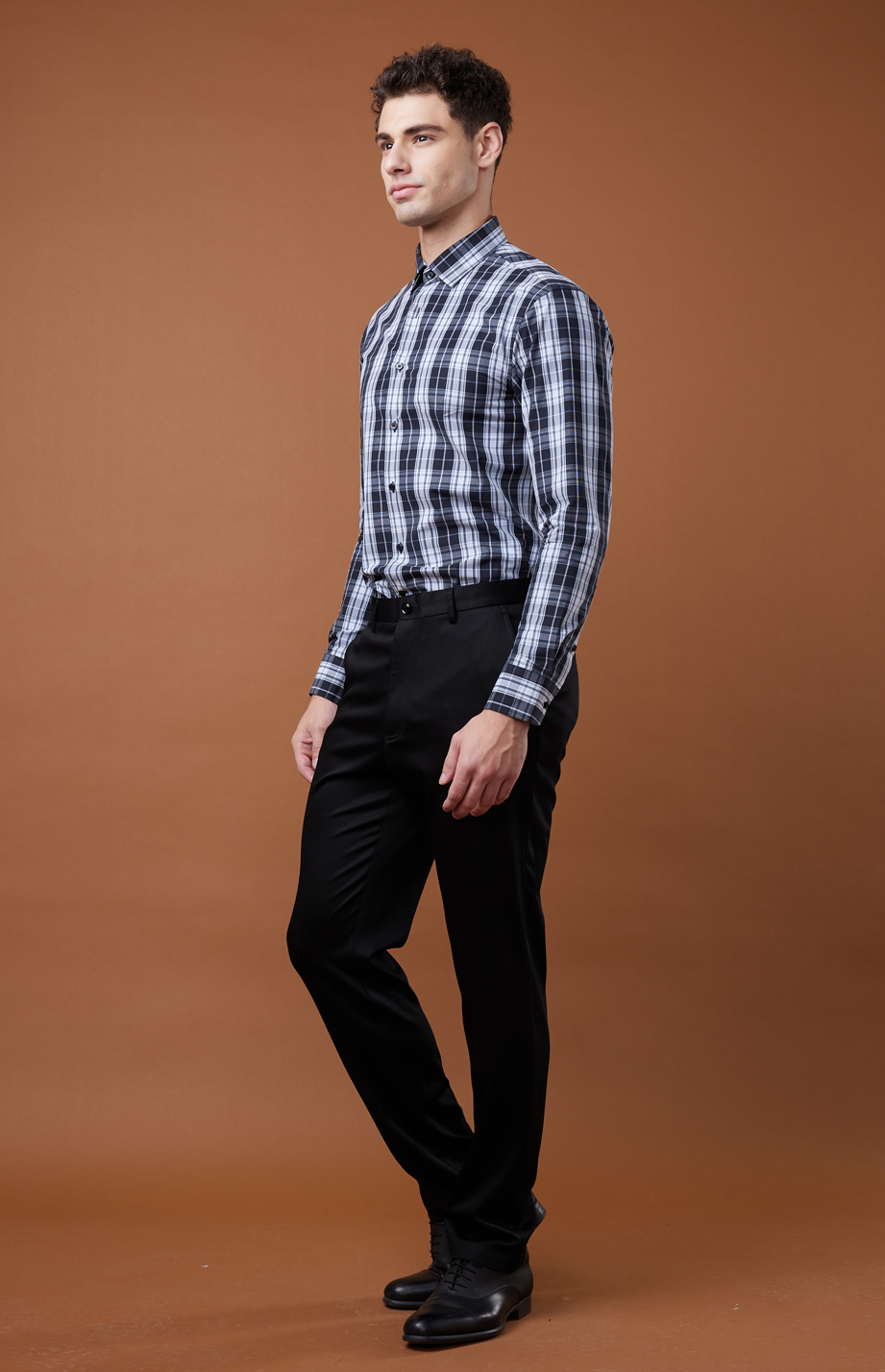 | 款名: | 黑色浅蓝相间格子纯棉磨毛长袖衬衫 | |||||