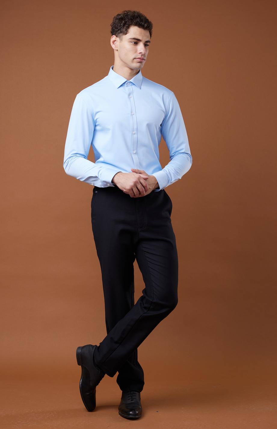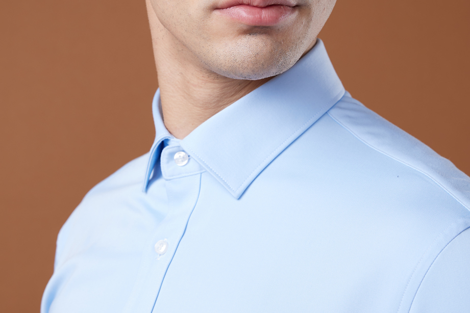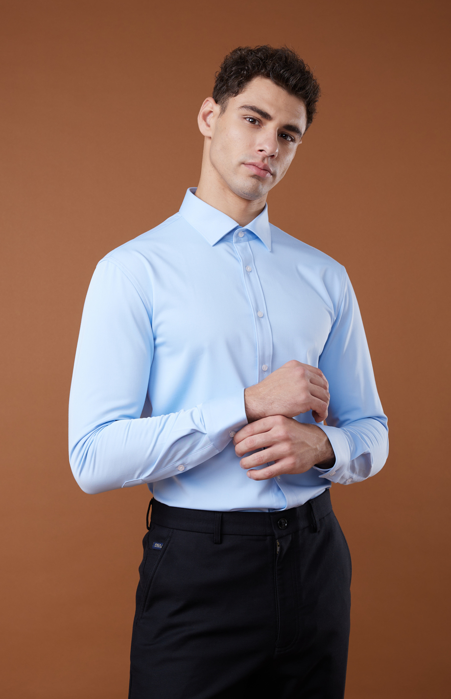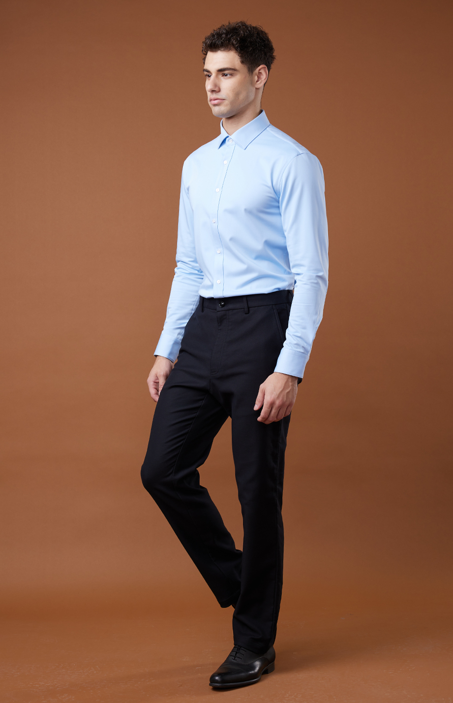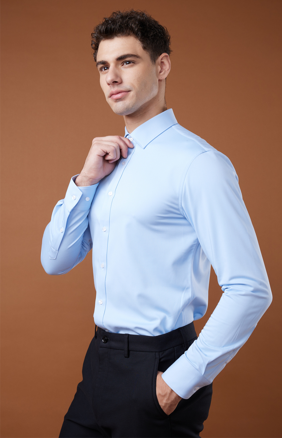 | 款名: | 浅蓝色粘胶(竹纤维)聚酯纤维混纺微弹内侧磨毛长袖衬衫 | |||
