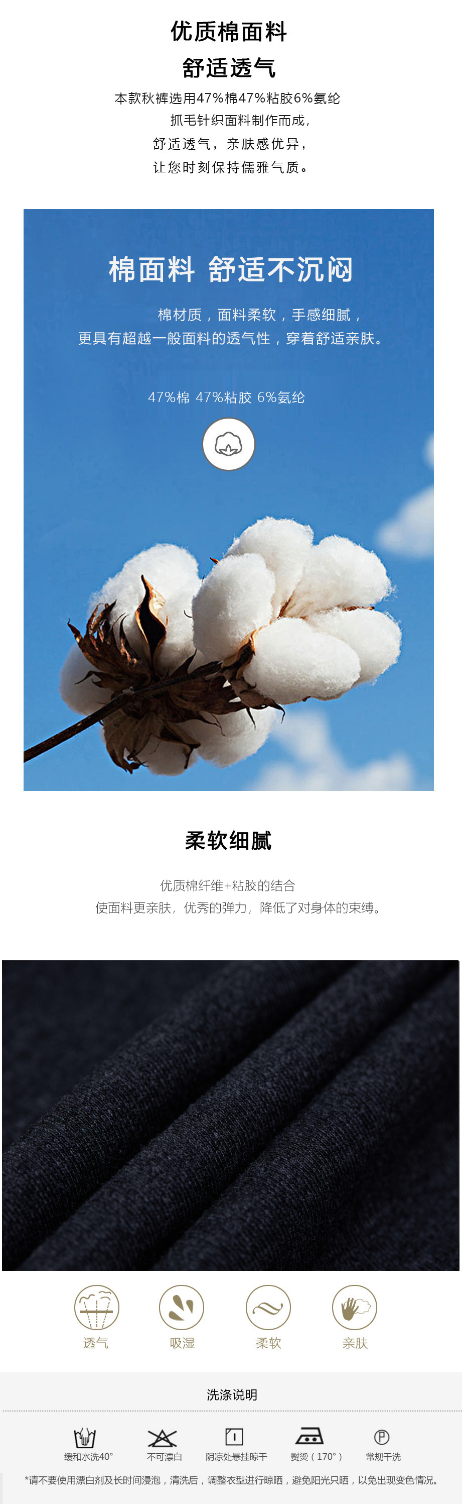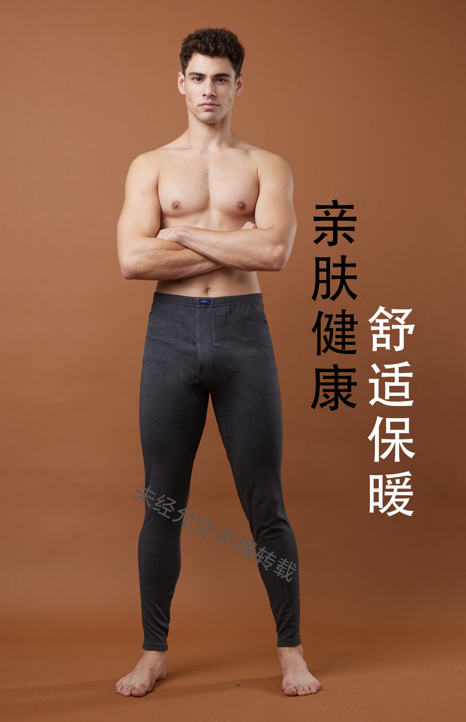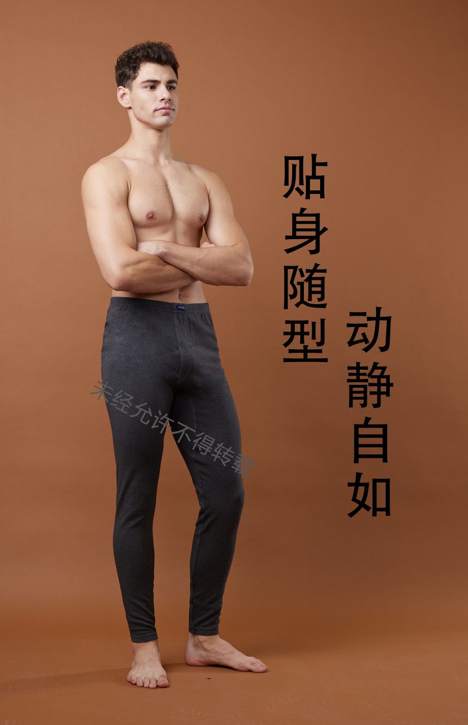炭灰色棉粘胶混纺磨毛加厚男士秋裤 |