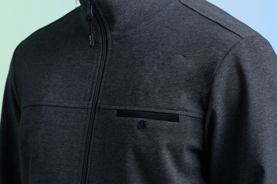 前胸做分割、拼色带扣胸兜的设计让衣服更有动感,更实用。