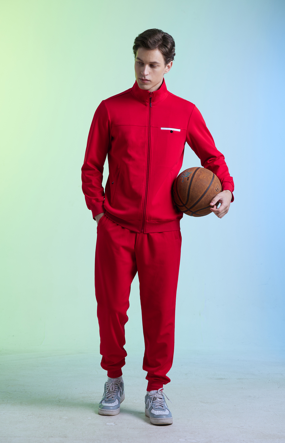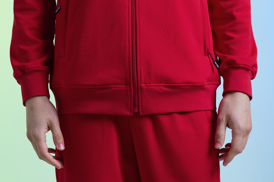 | 款名: | 红色棉聚酯纤维混纺时尚运动装上衣 | |||
