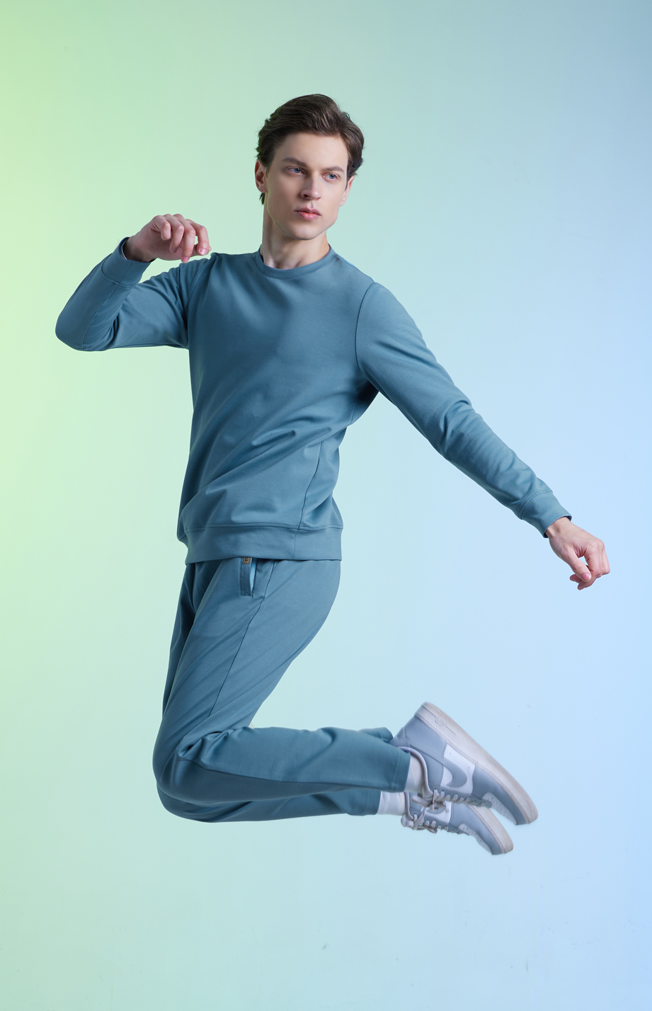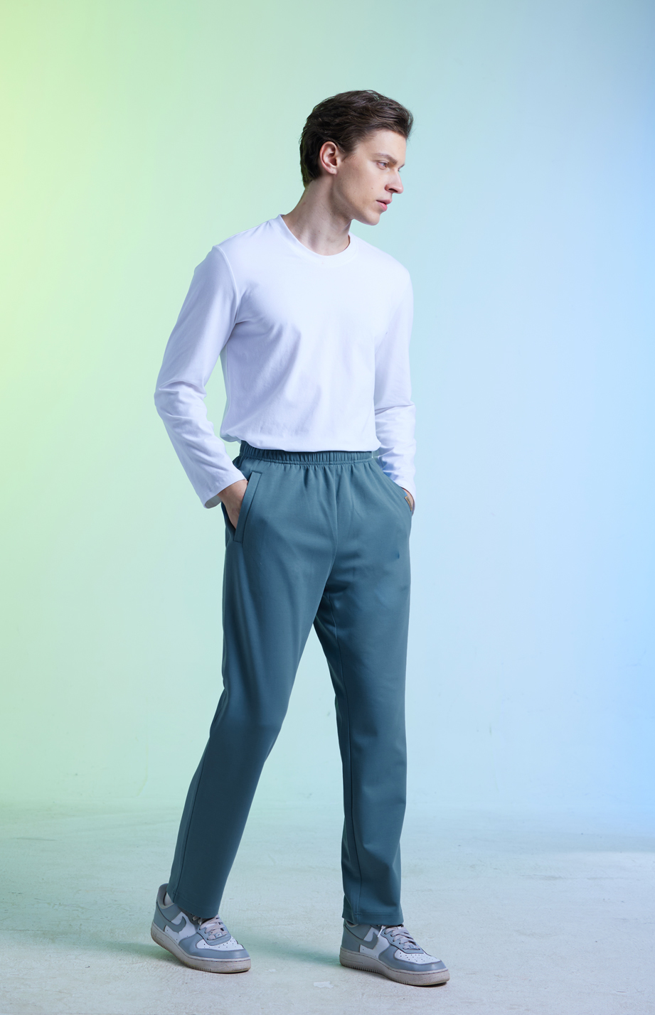 | 款名: | 蓝灰色棉聚酯纤维混纺春夏秋散口运动裤 | |||