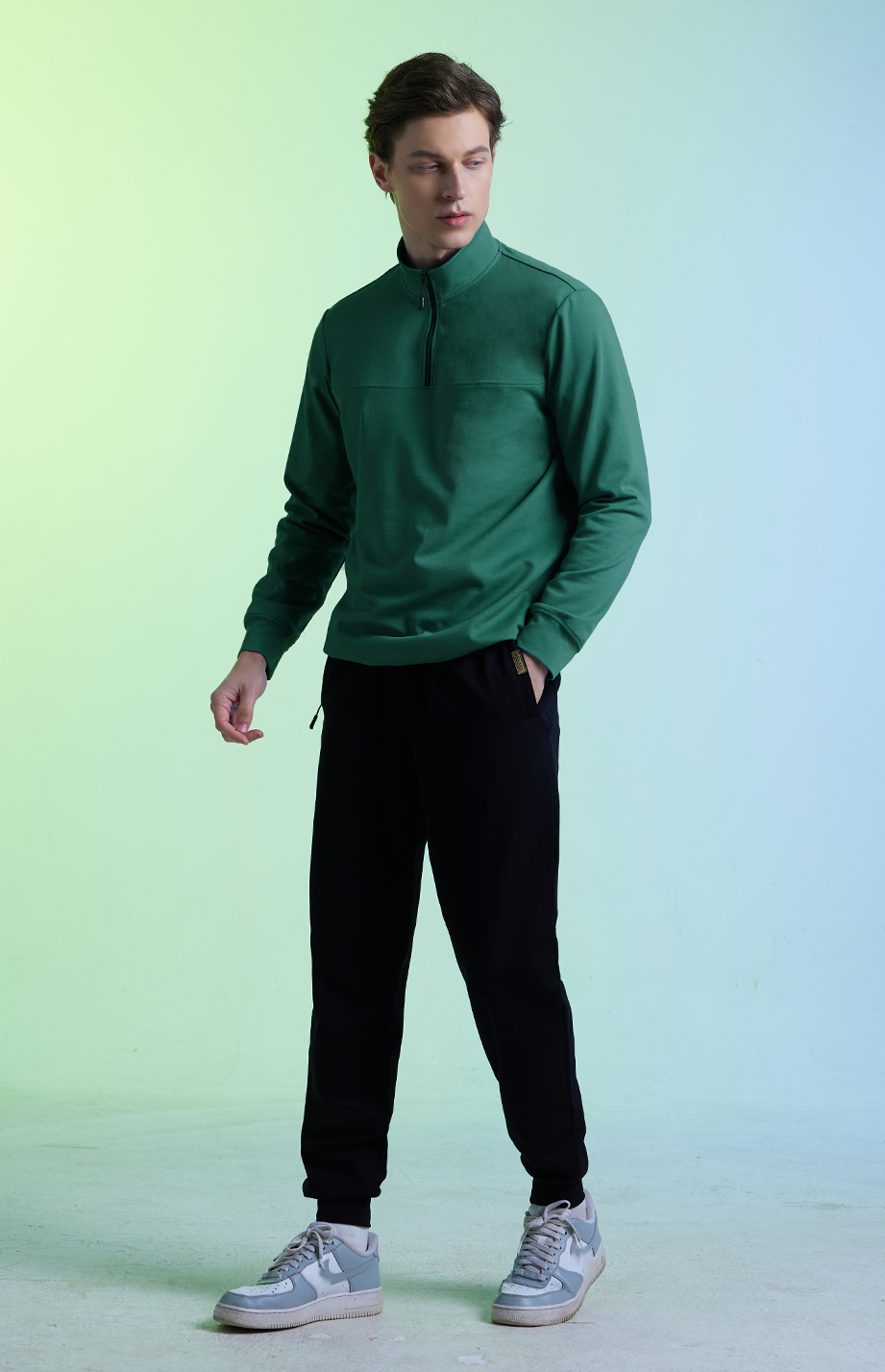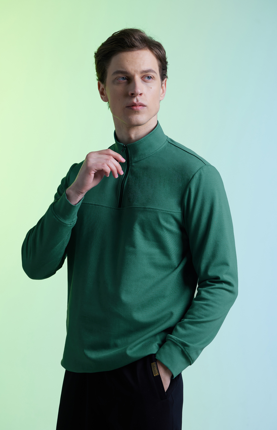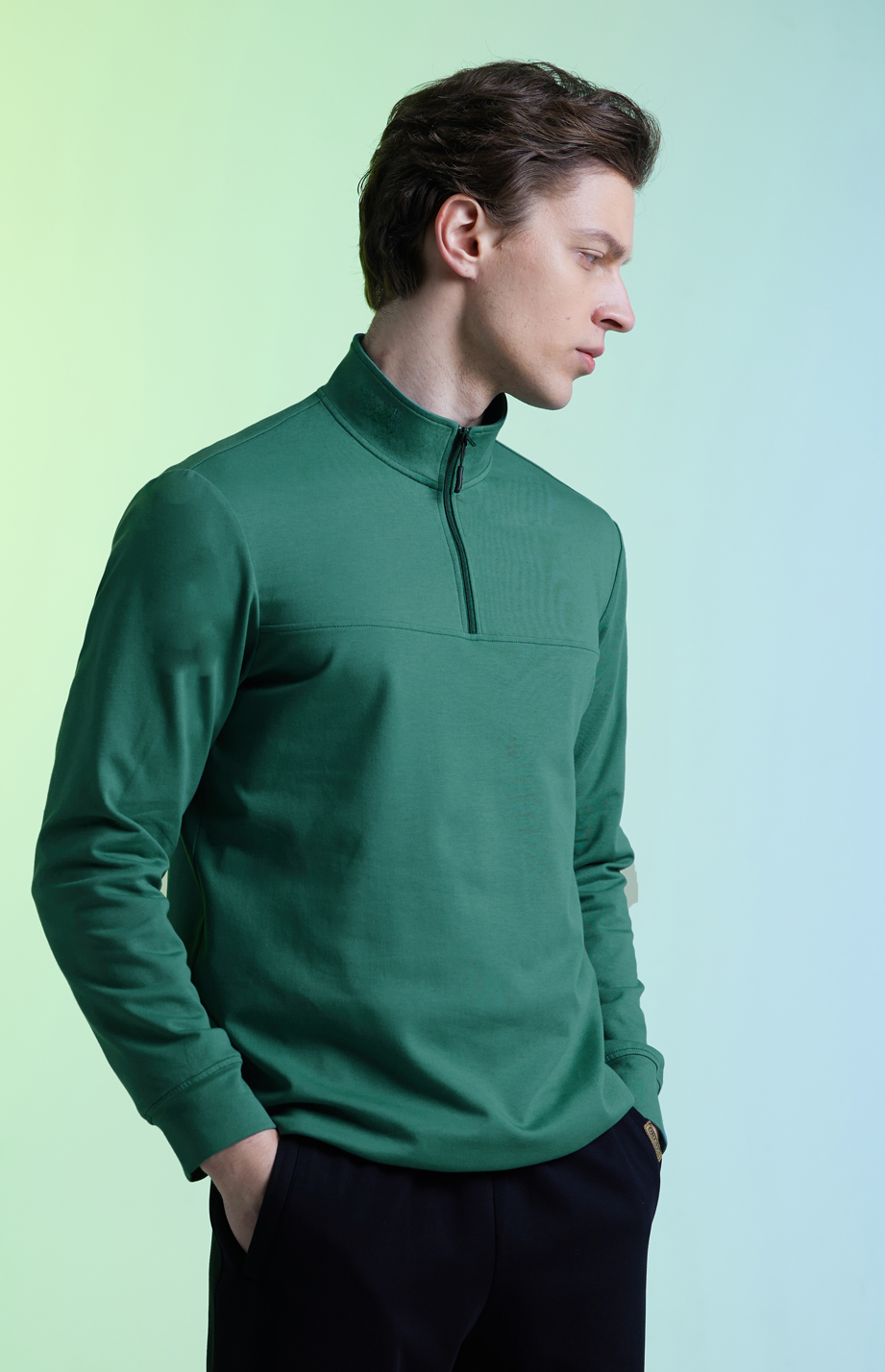 | 款名: | 深宝石绿棉聚酯纤维混纺高领卫衣 | |||