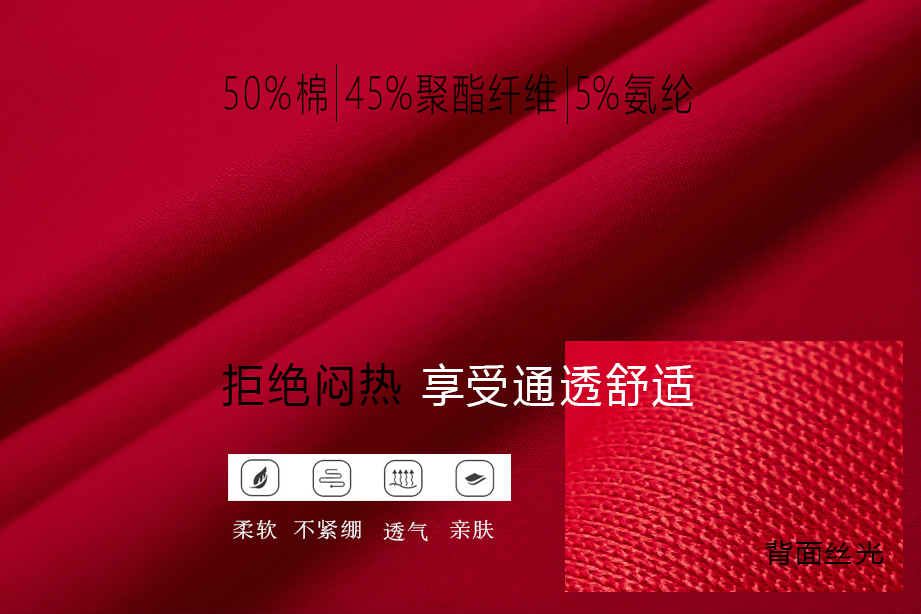 | 面料: | 50%棉45%聚酯纤维5%氨纶 | |||