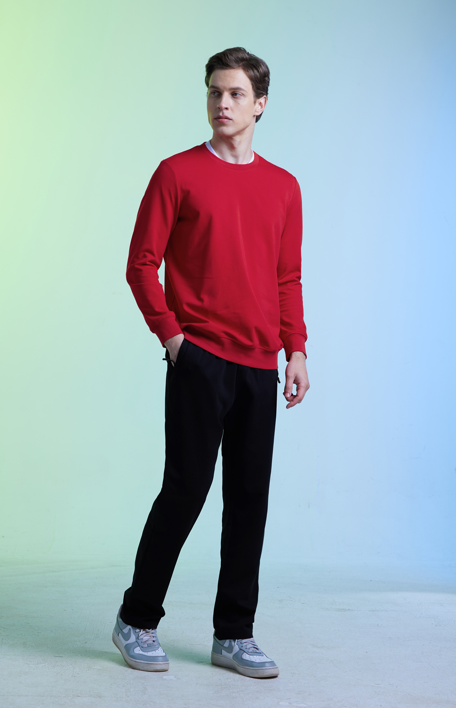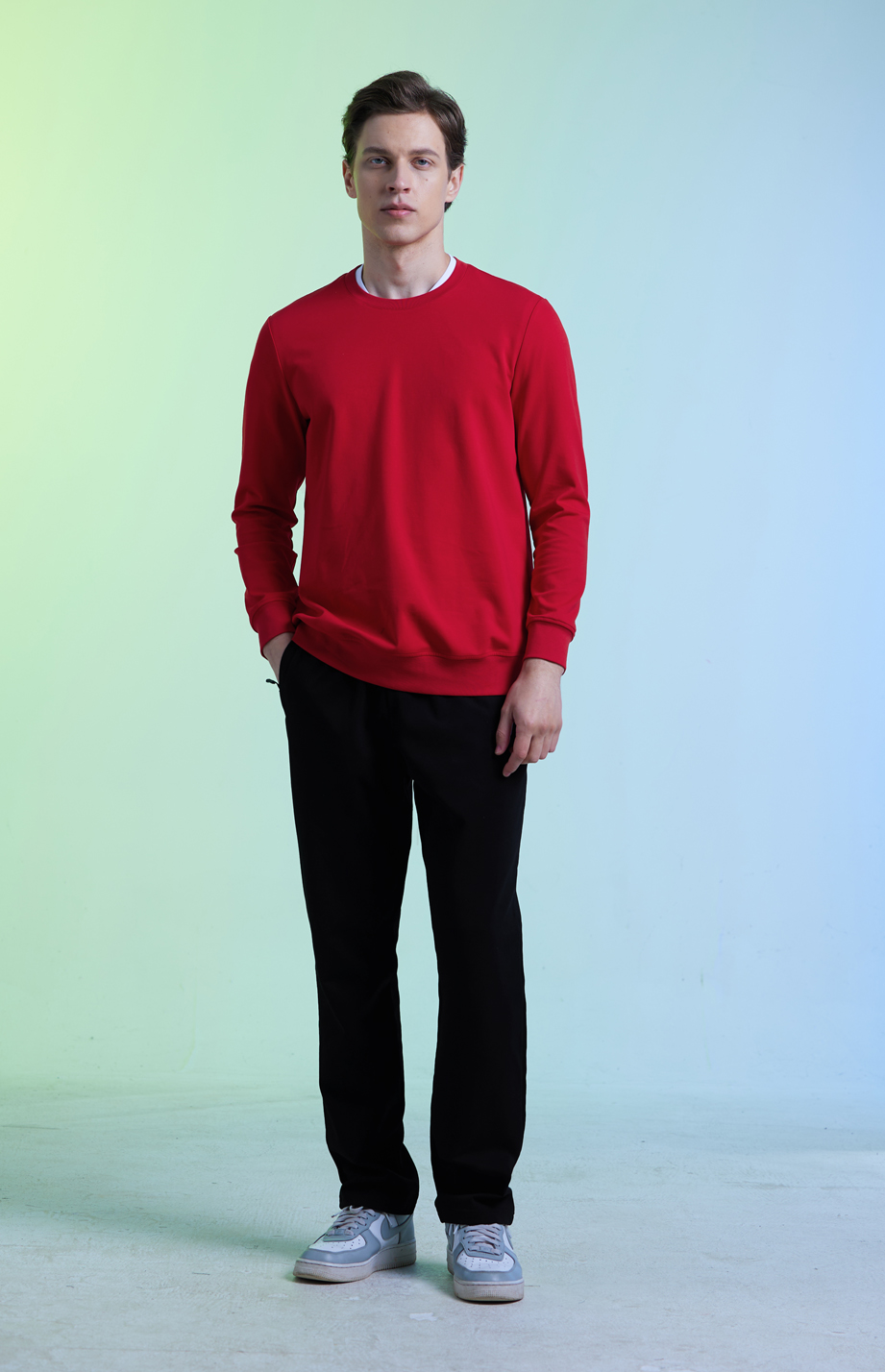 | 款名: | 红色棉聚酯纤维混纺超舒适圆领卫衣 | |||