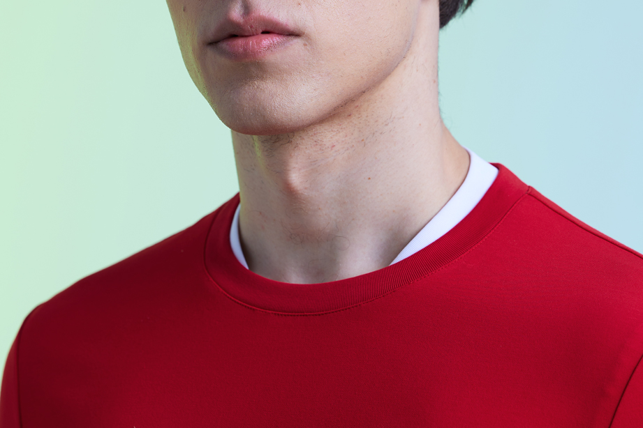 红色棉聚酯纤维混纺超舒适圆领卫衣 |