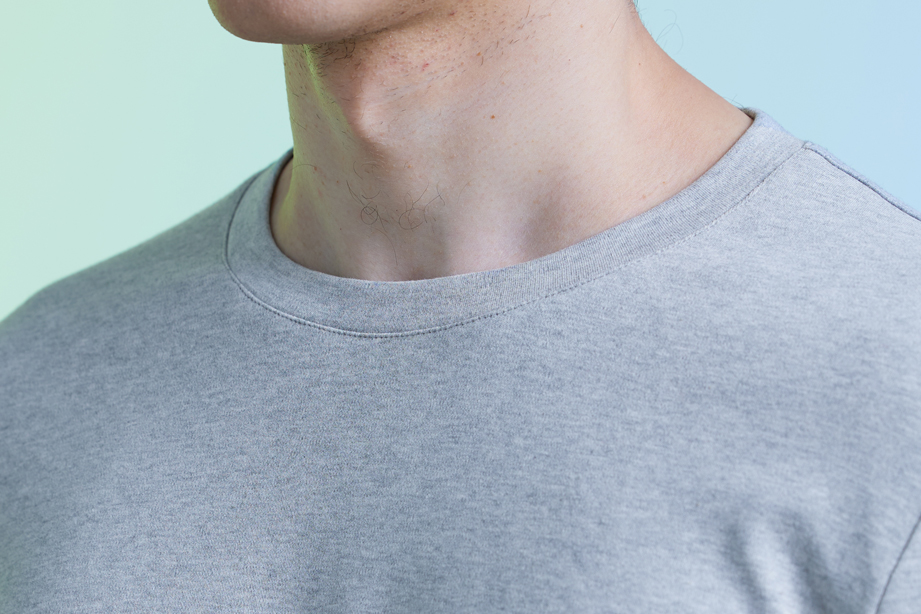 简洁利落的立领,也可以做翻领使用(白色为内搭白T恤的领子边缘)。