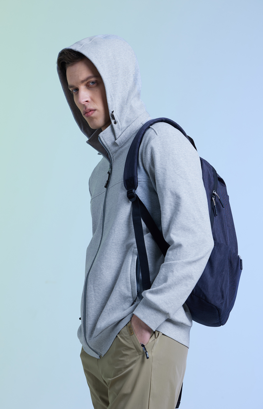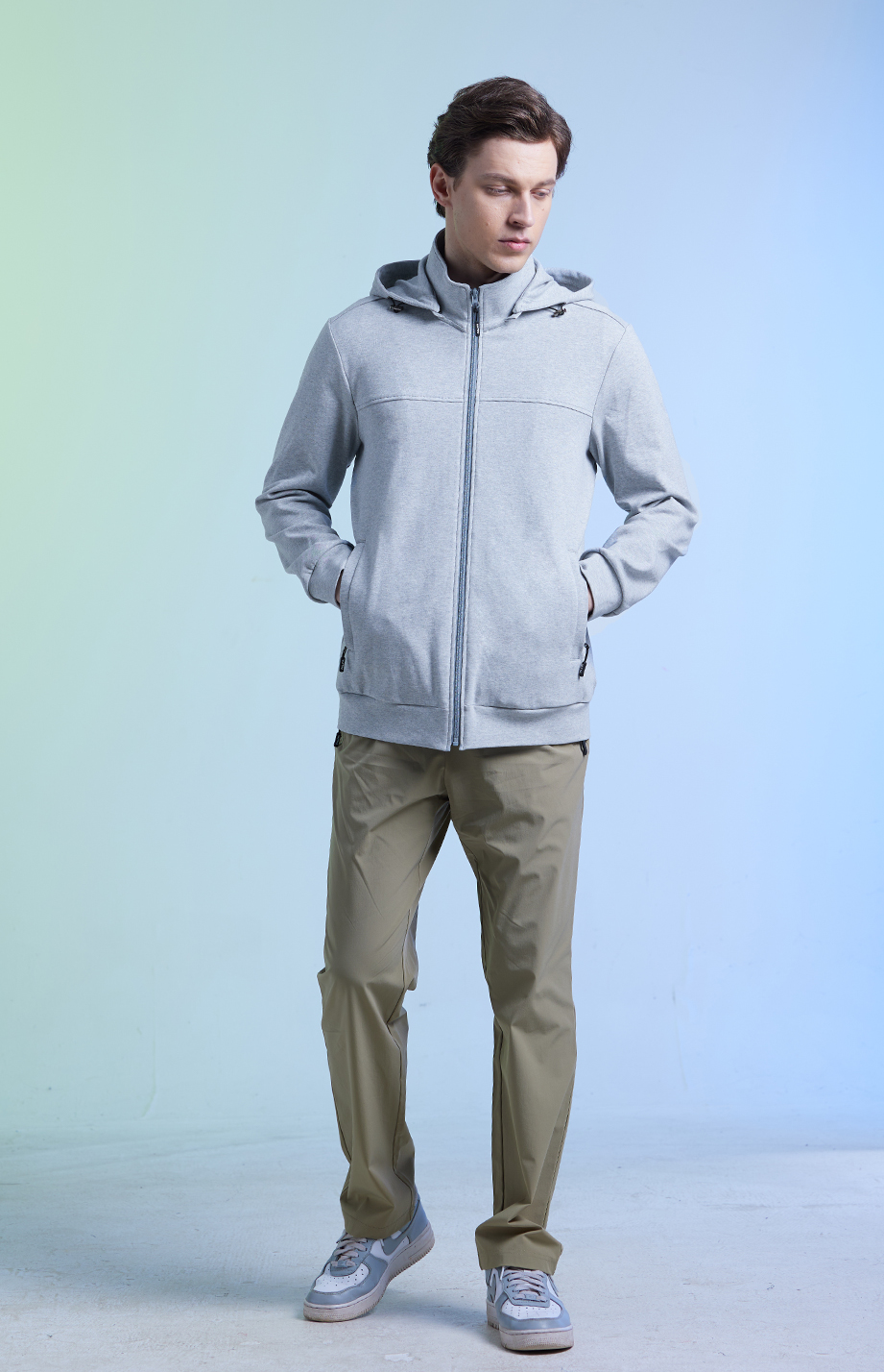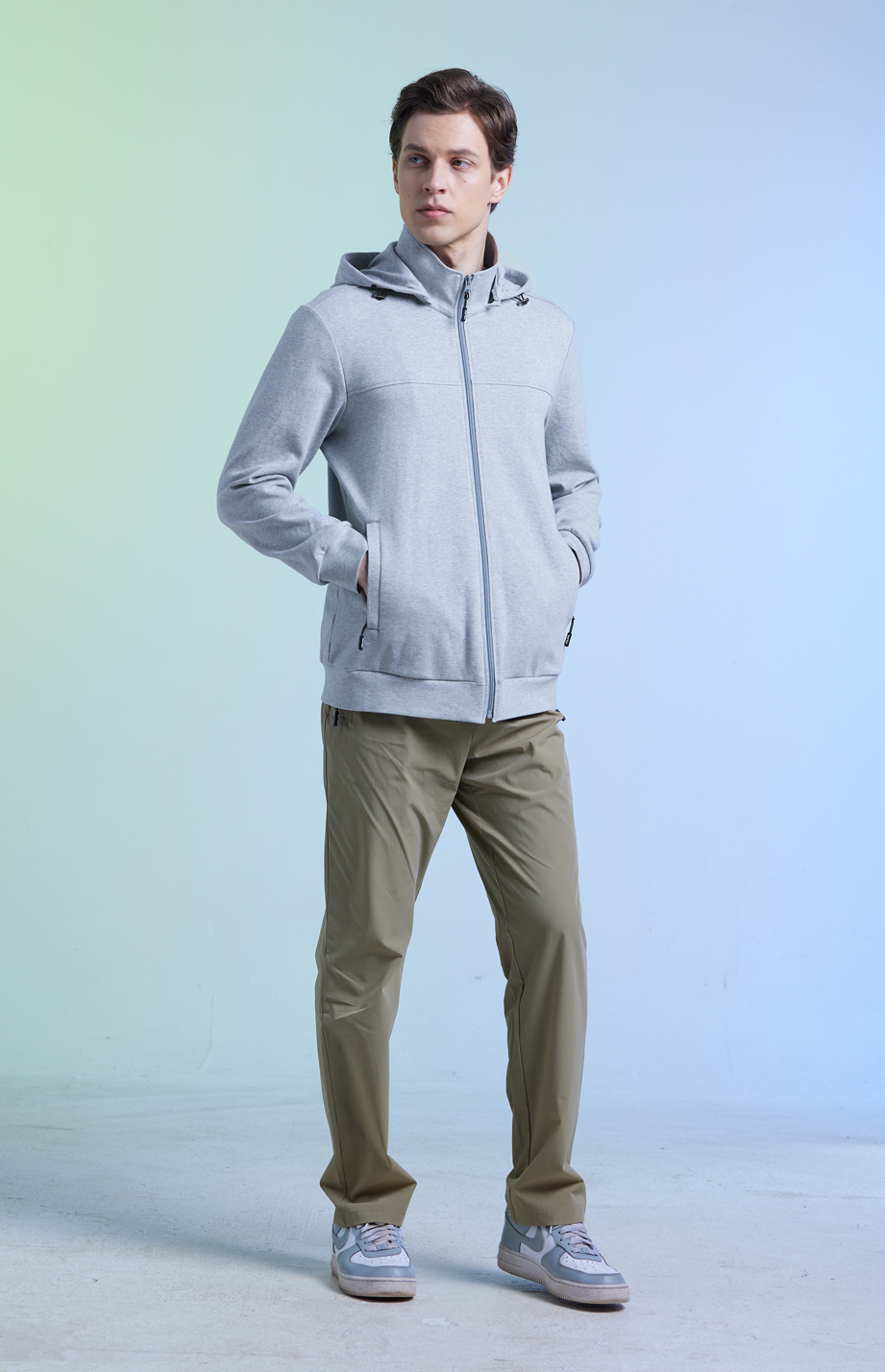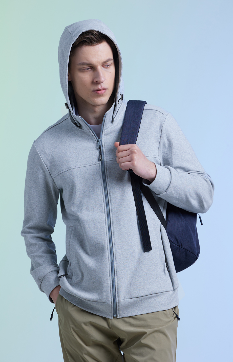 花灰色纯棉超舒适运动休闲帽衫(帽可拆卸) |