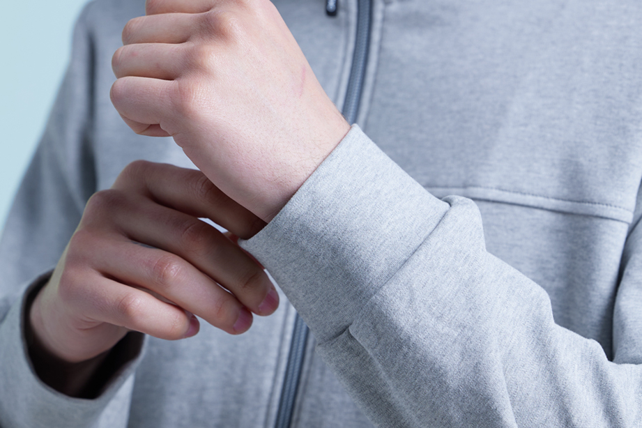 袖头使用简洁的顺色针织罗纹,舒适又有型。