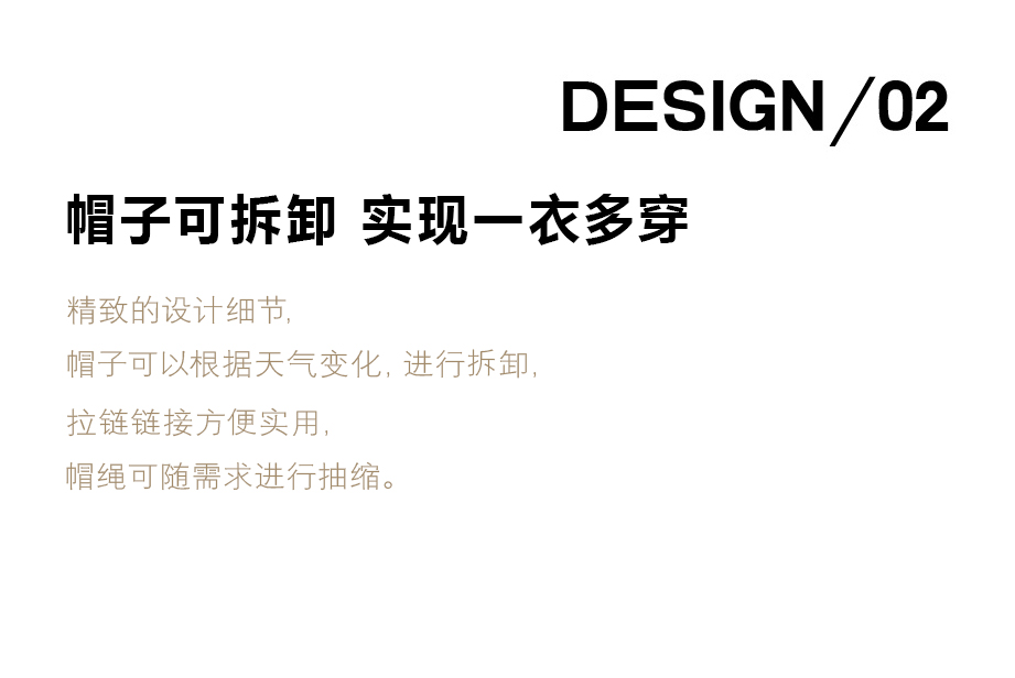 帽子可根据您的需求进行拆卸,实现一衣多穿。
