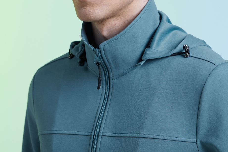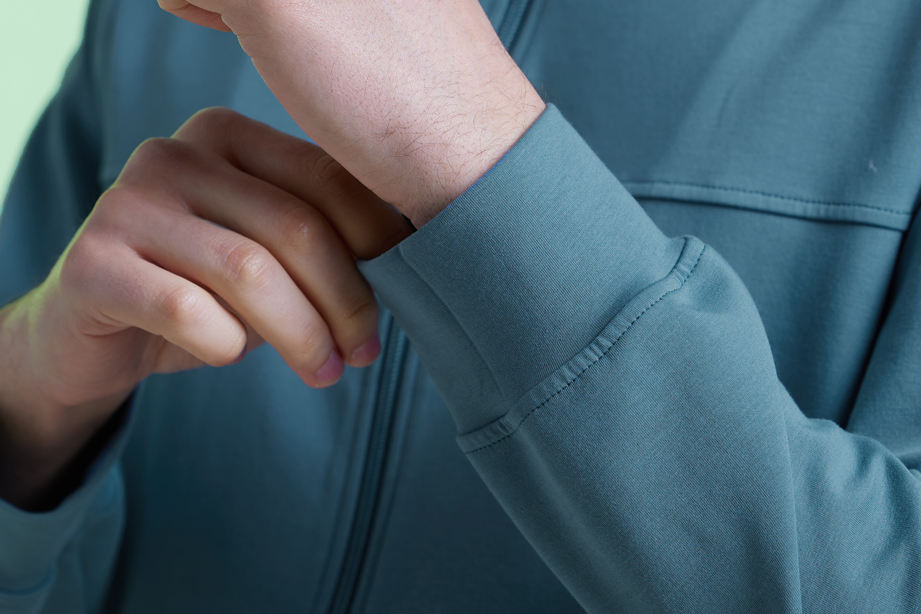 袖头使用简洁的顺色针织罗纹,舒适又有型。