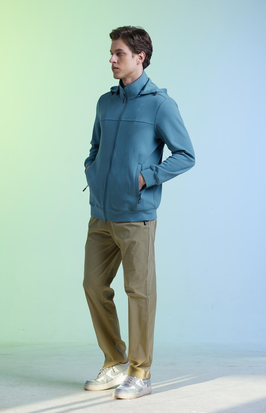 | 款名: | 蓝灰色棉聚酯纤维混纺时尚运动休闲帽衫(帽可拆卸) | |||