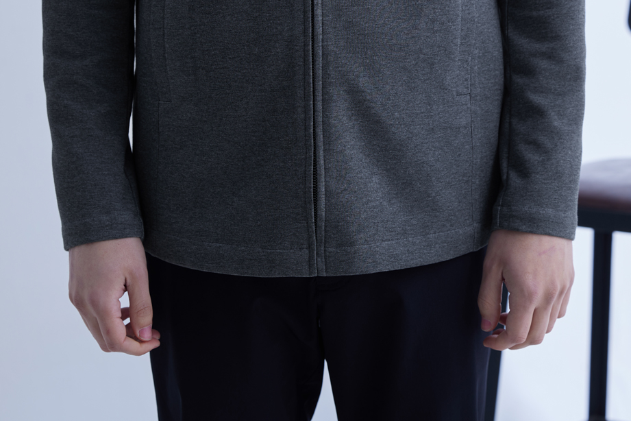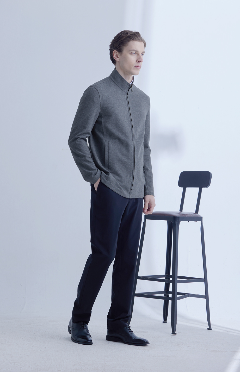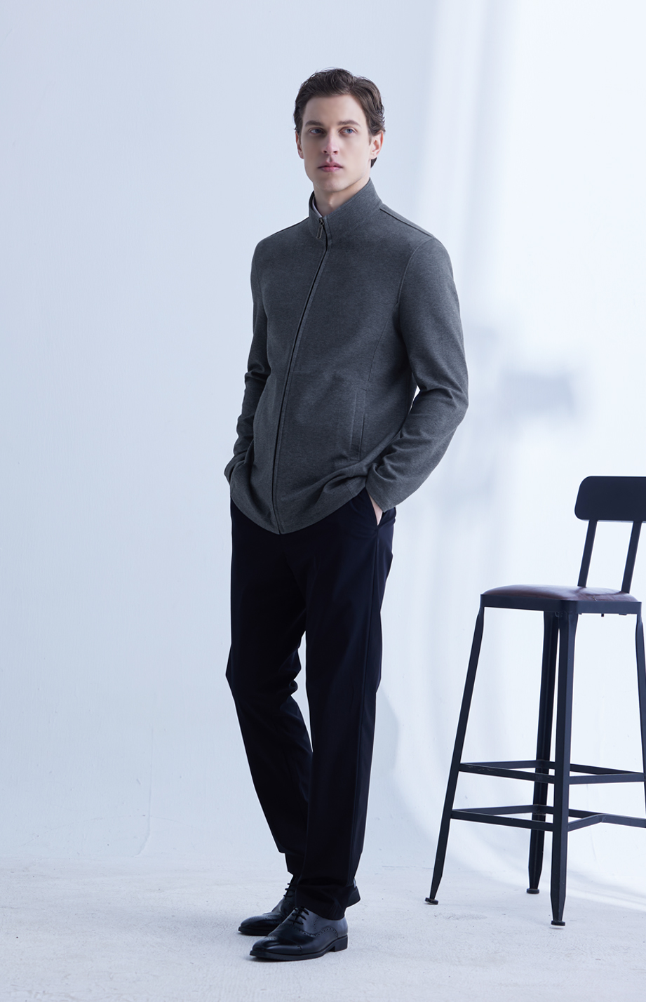 | 款名: | 深花灰色棉聚酯纤维混纺针织立领商务茄克 | |||