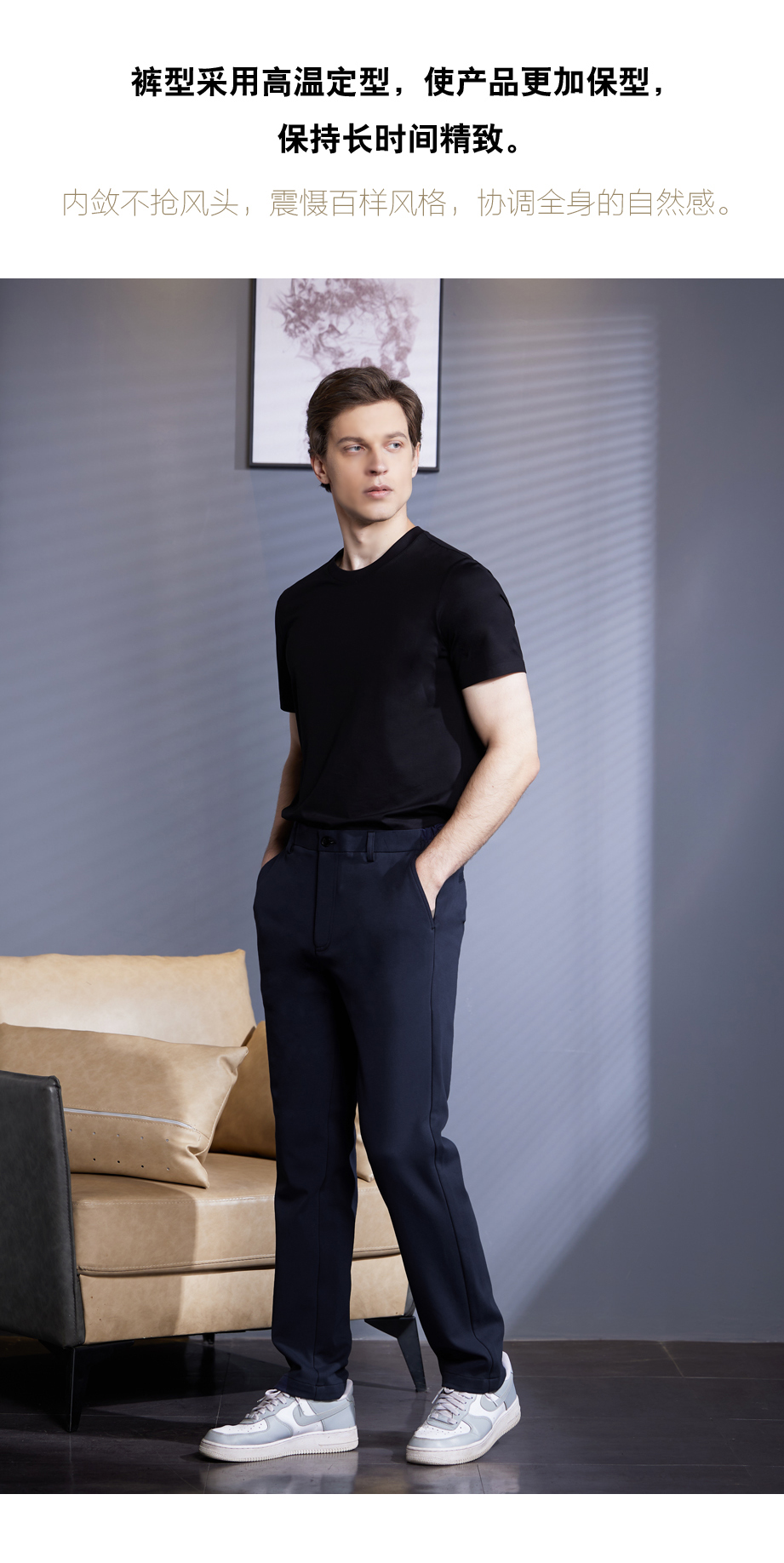 舒适利落的直筒裤口设计,包边处理平整,做工无可挑剔。