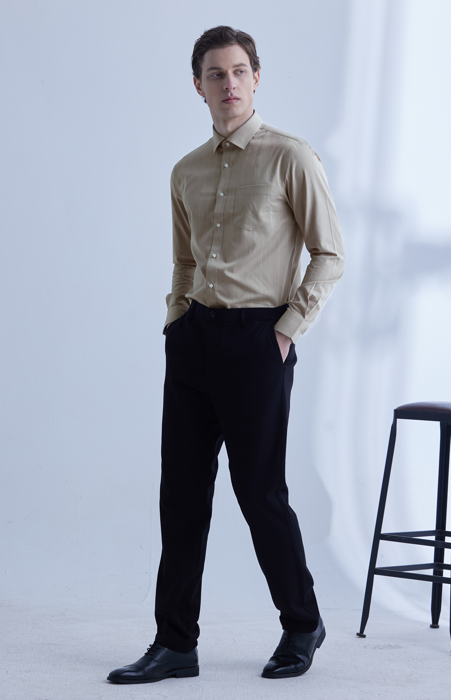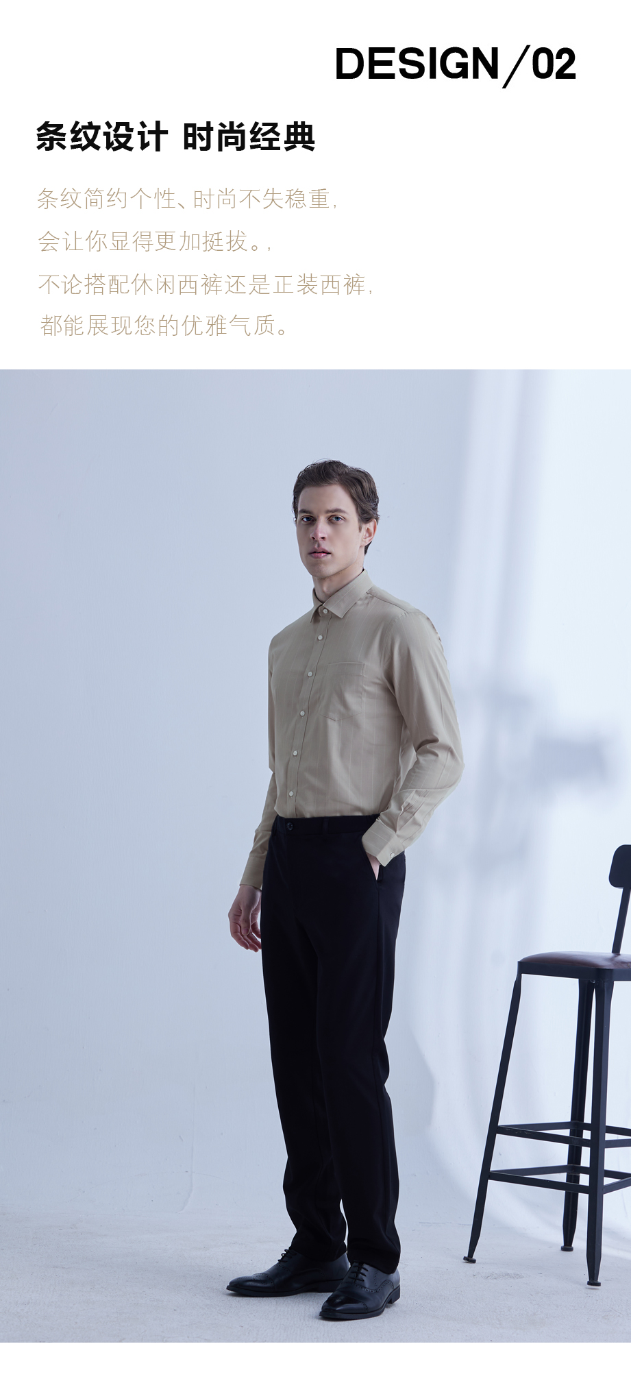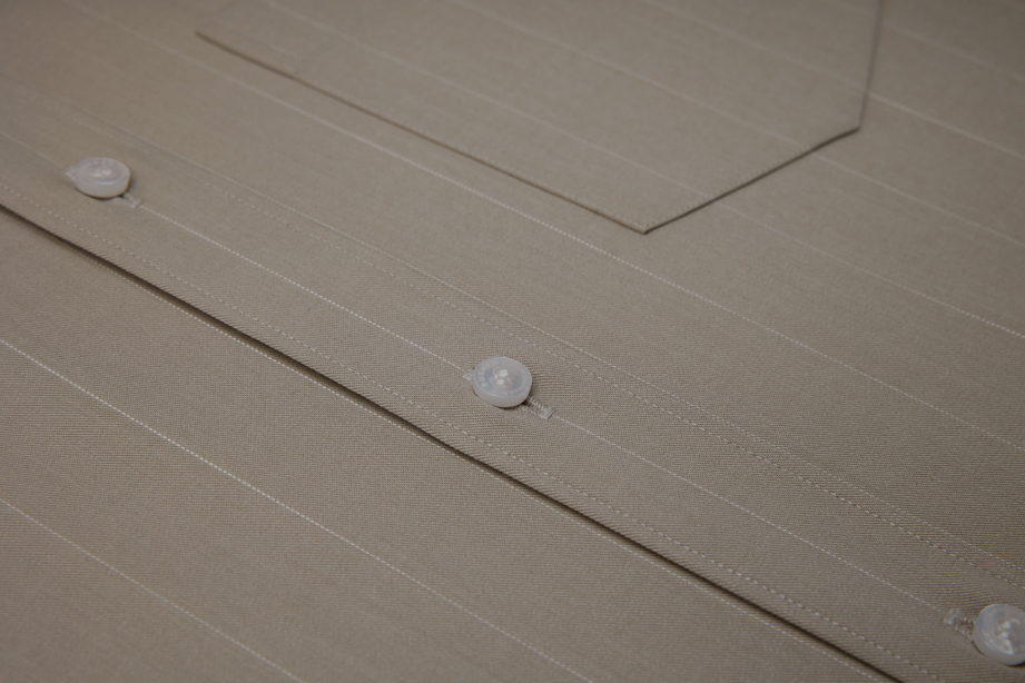 | 款名: | 浅卡其色粘胶聚酯纤维混纺宽条纹长袖衬衫 | |||