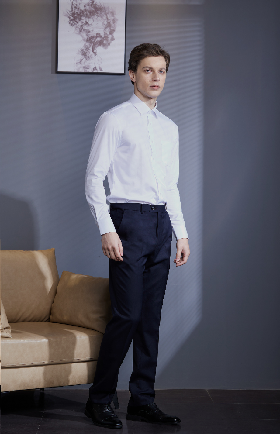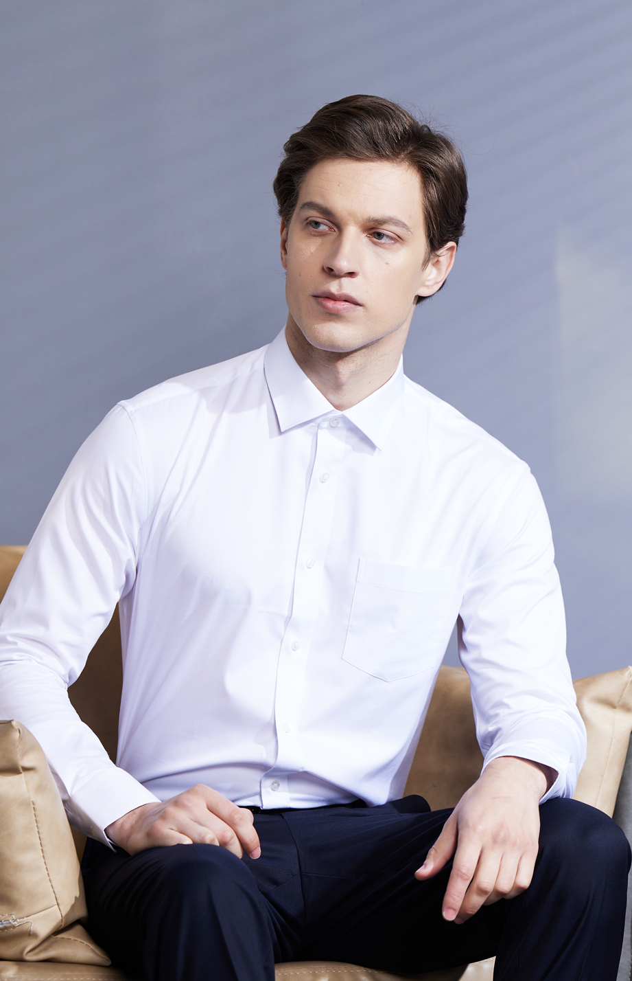 | 款名: | 白色芦荟纤维抗皱纤维混纺柔感长袖衬衫 | |||||