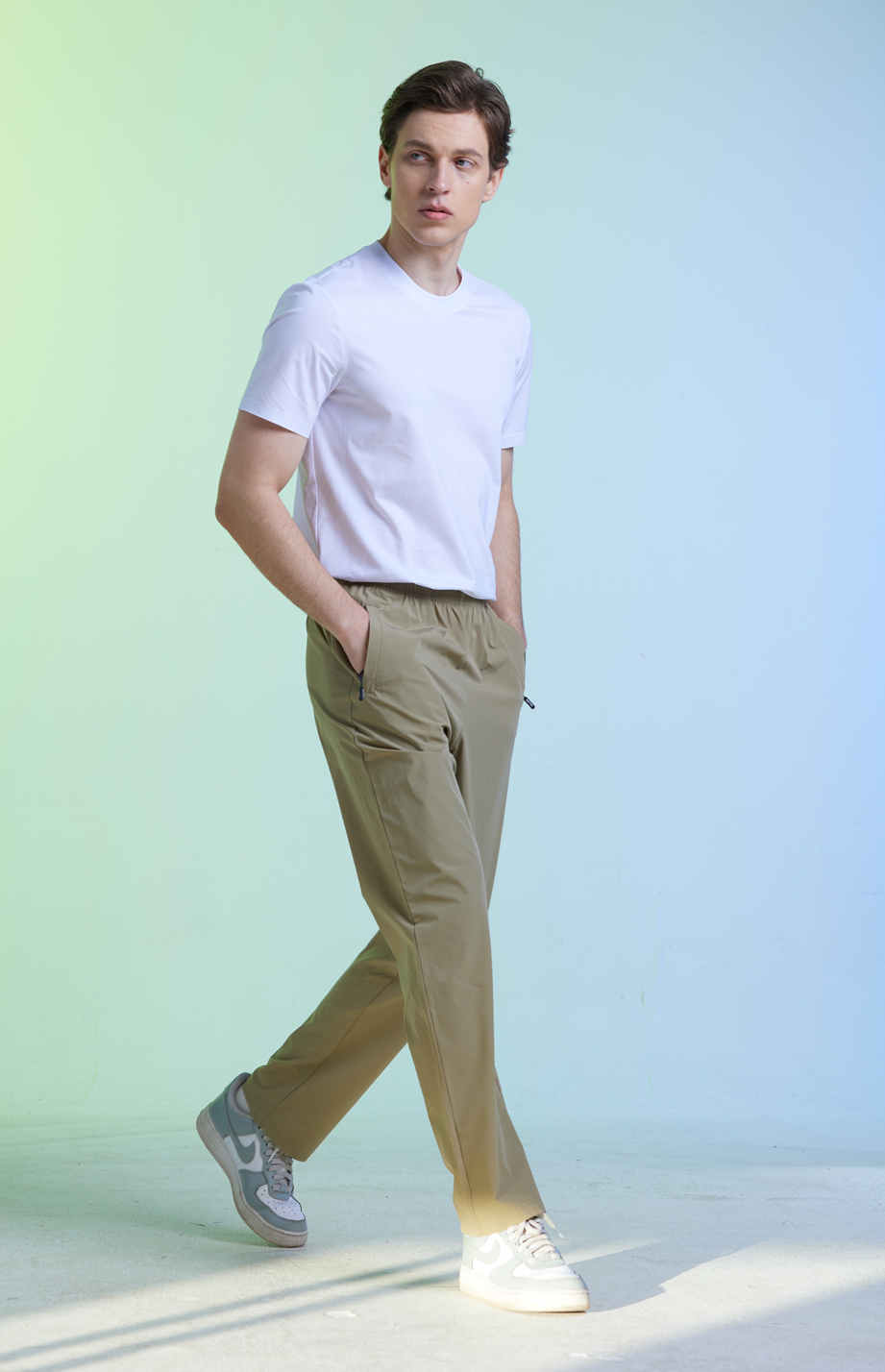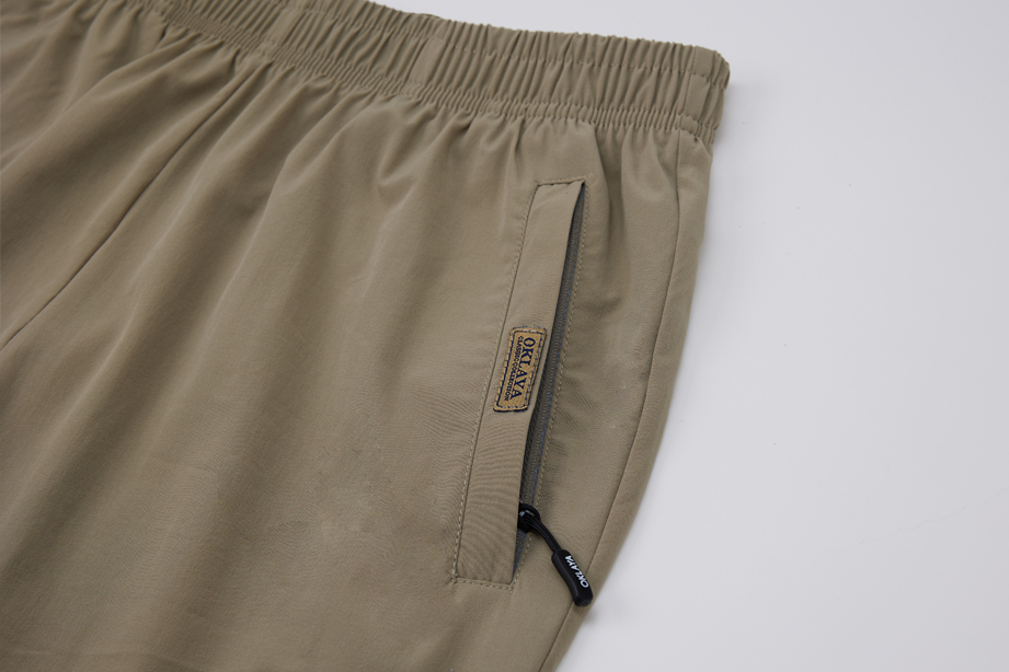 | 款名: | 卡其色锦纶氨纶混纺速干散口运动裤 | |||||
