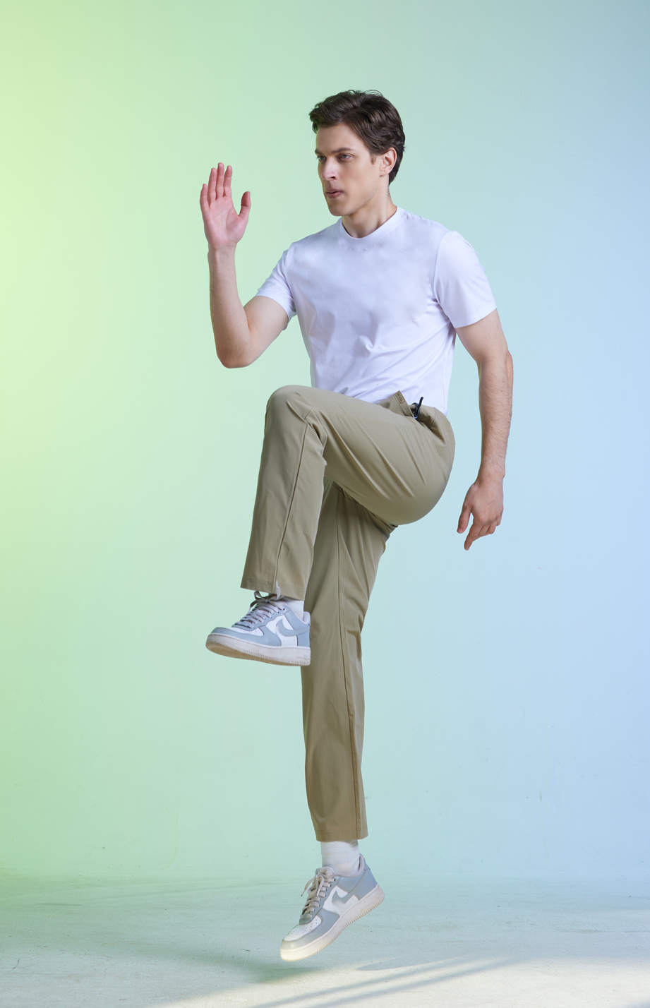 | 款名: | 卡其色锦纶氨纶混纺速干散口运动裤 | |||