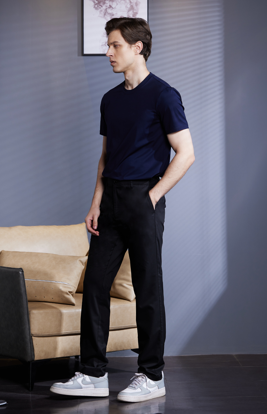 | 款名: | 黑色聚酯纤维再生纤维素纤维混纺松紧腰春夏休闲裤 | |||