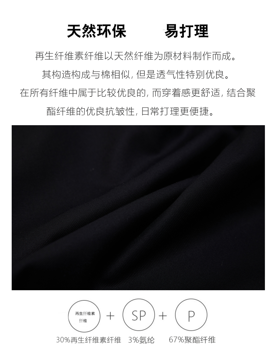 | 面料: | 30%再生纤维素纤维67%聚酯纤维3%氨纶 | |||