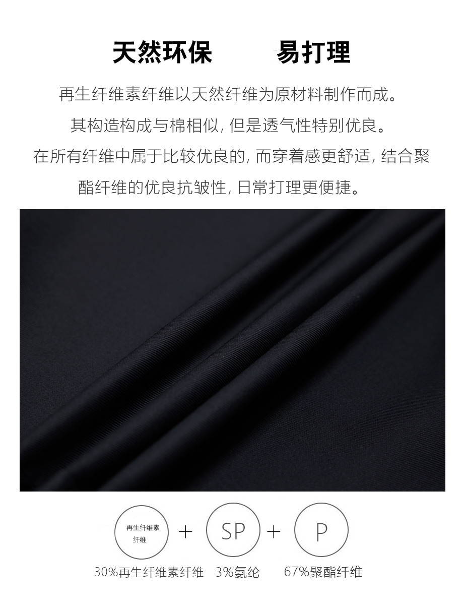 | 面料: | 30%再生纤维素纤维67%聚酯纤维3%氨纶 | |||
