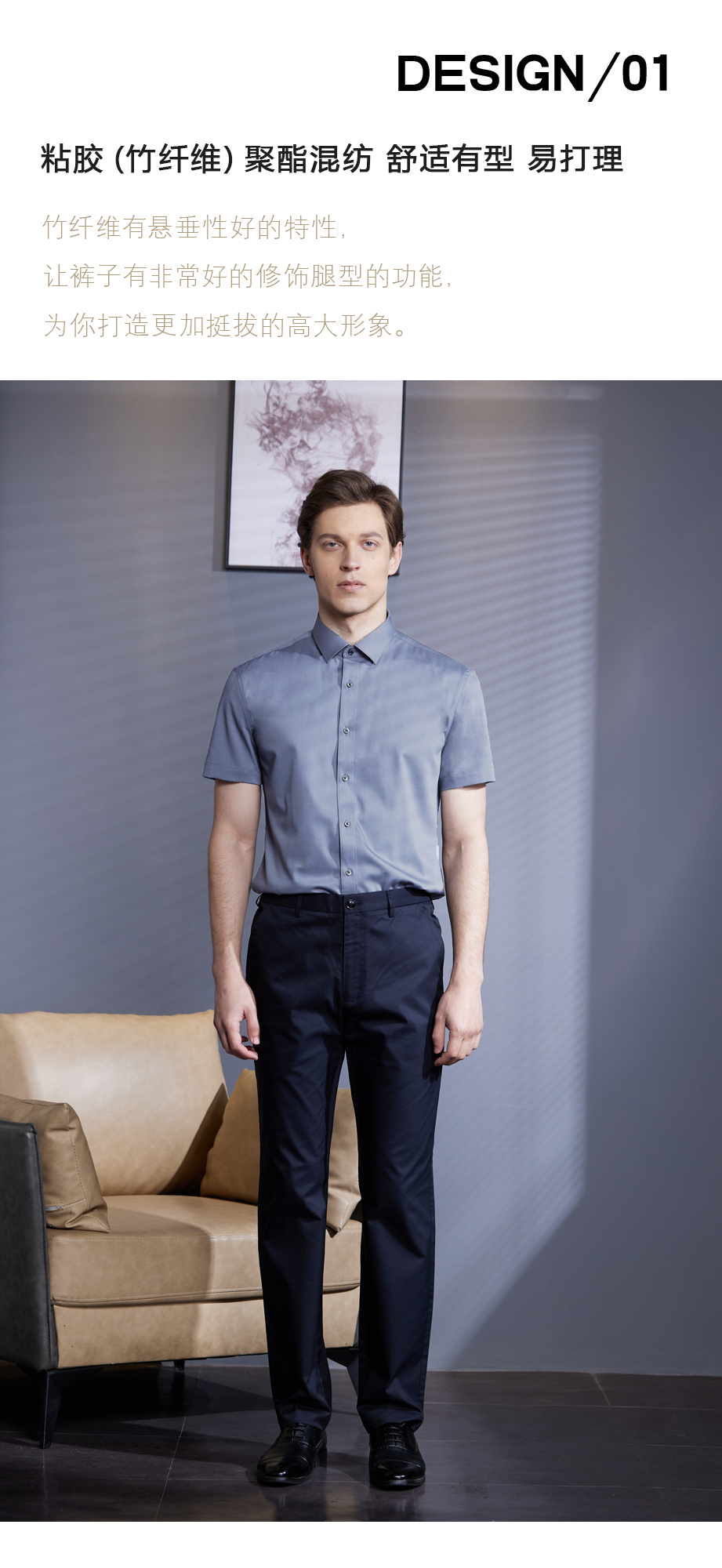 舒适利落的直筒裤口设计,包边处理平整,做工无可挑剔。