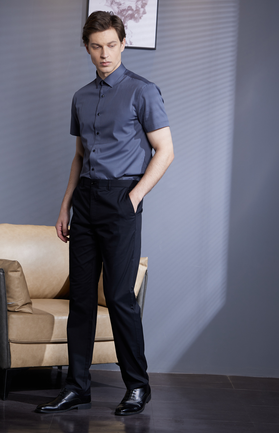 | 款名: | 藏蓝色粘胶(竹)聚酯纤维混纺微弹春夏抗皱休闲裤 | |||