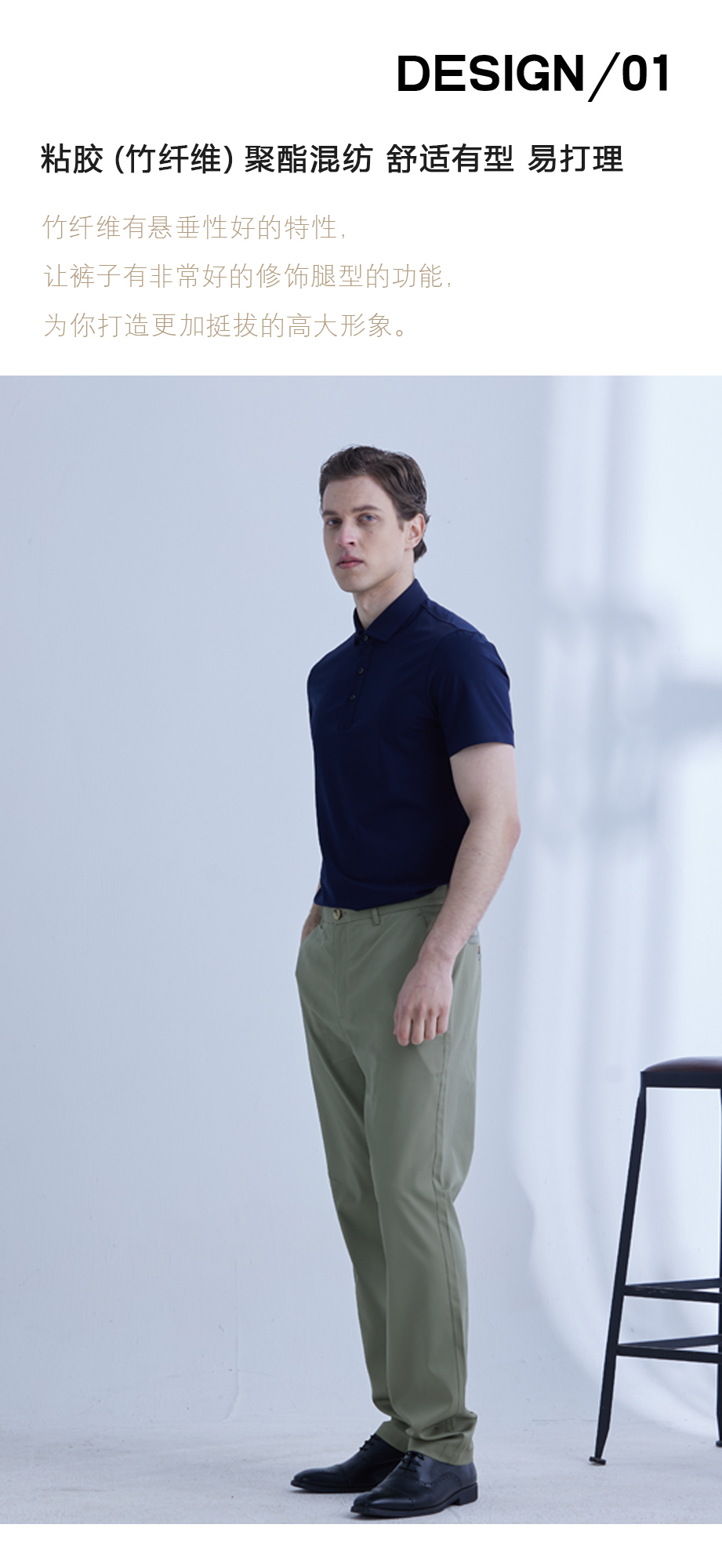 | 款名: | 浅灰绿色粘胶(竹)聚酯纤维混纺微弹春夏抗皱休闲裤 | |||