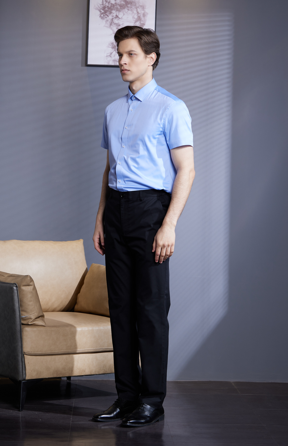 | 款名: | 深藏蓝色粘胶(竹)聚酯纤维混纺两侧松紧腰春夏抗皱休闲裤 | |||