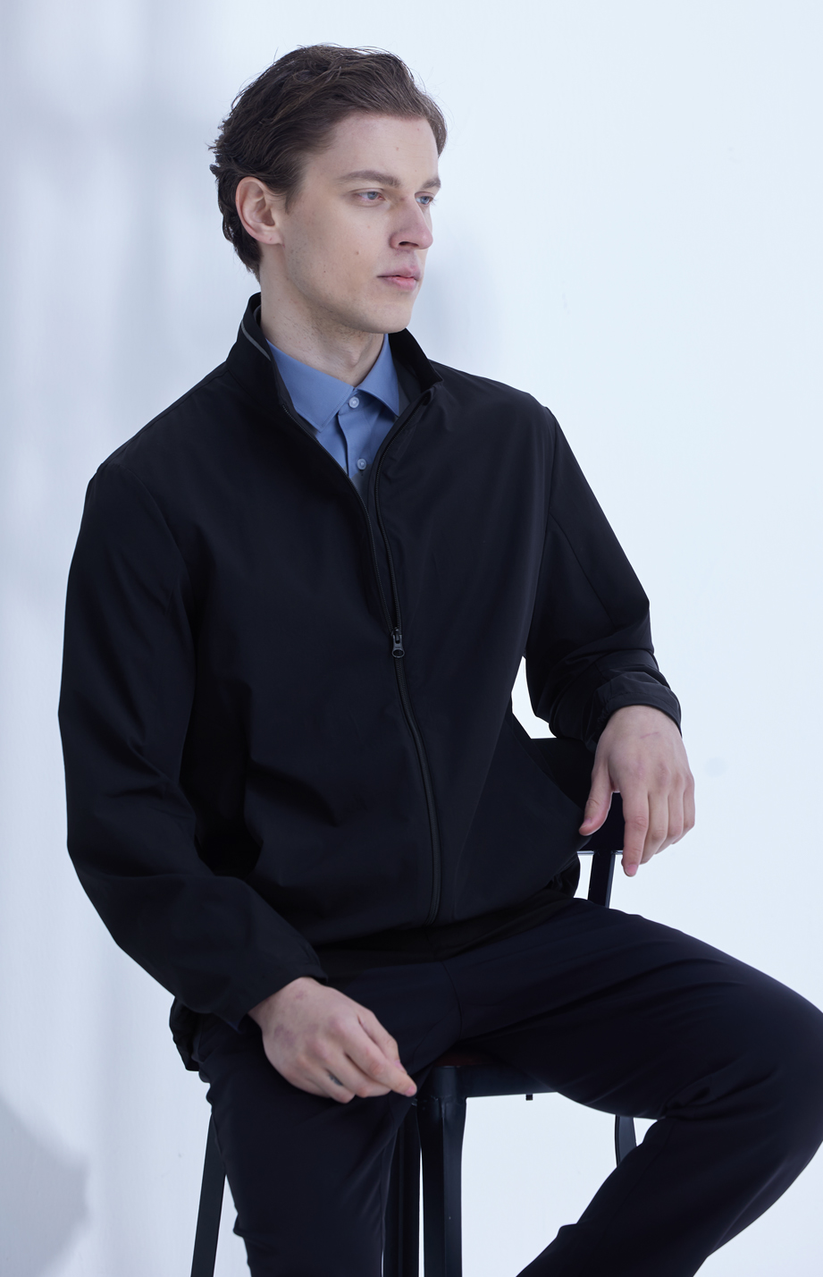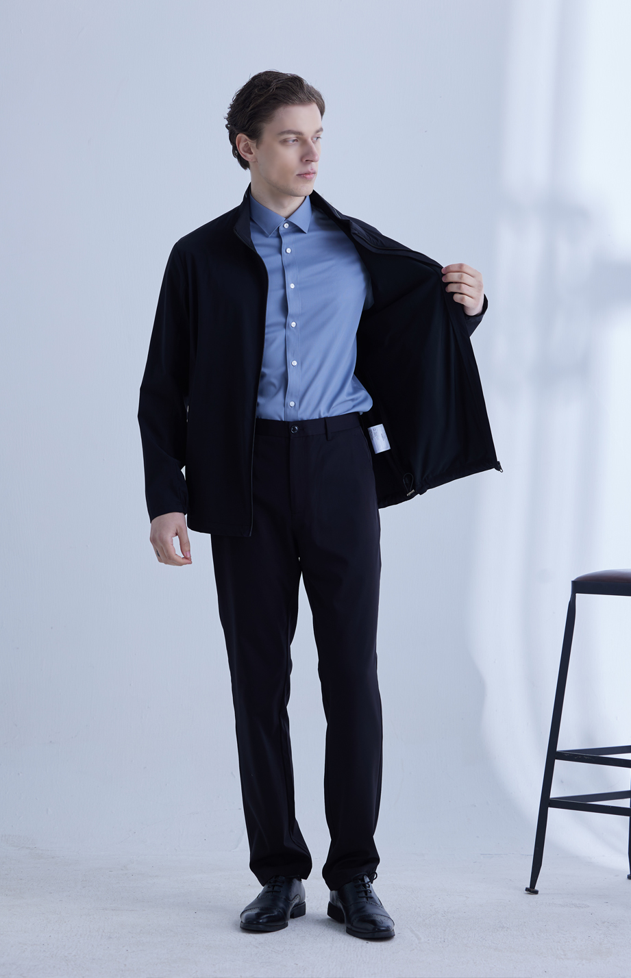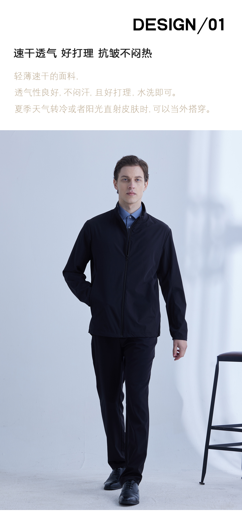 藏蓝色锦纶混纺四面弹速干轻便商务休闲茄克 |