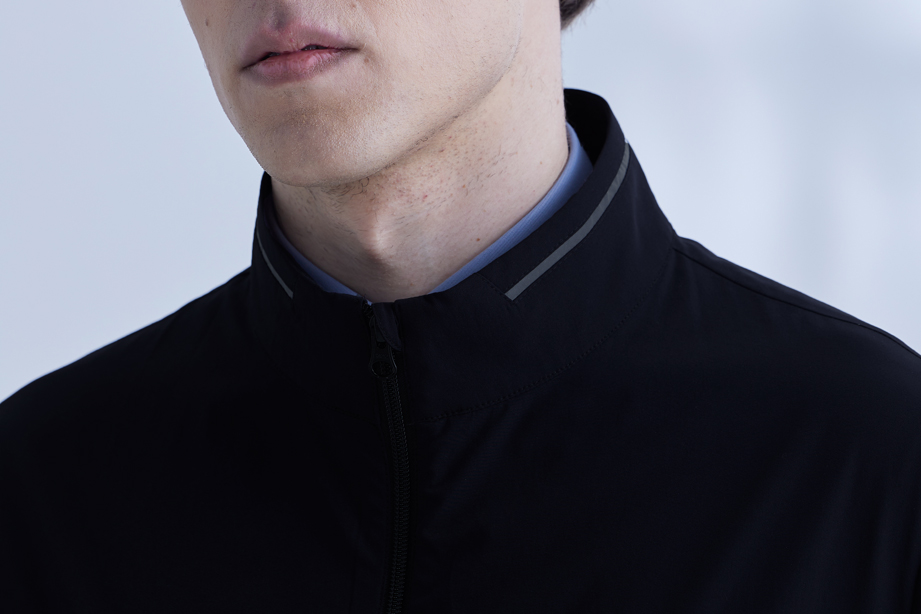 低立领的设计,更符合人体工学,更舒适更利落,领子上加了装饰实用的反光条,更美观也更实用。