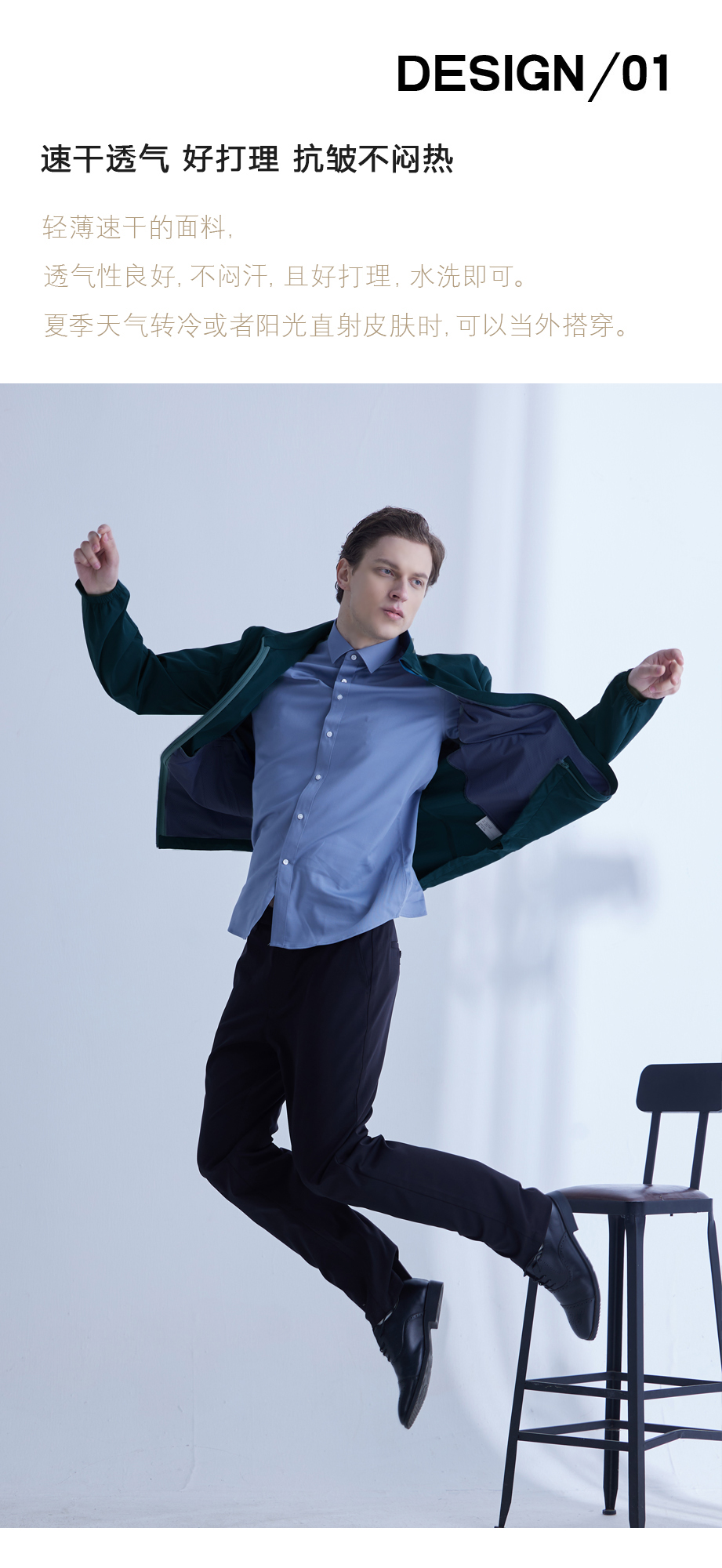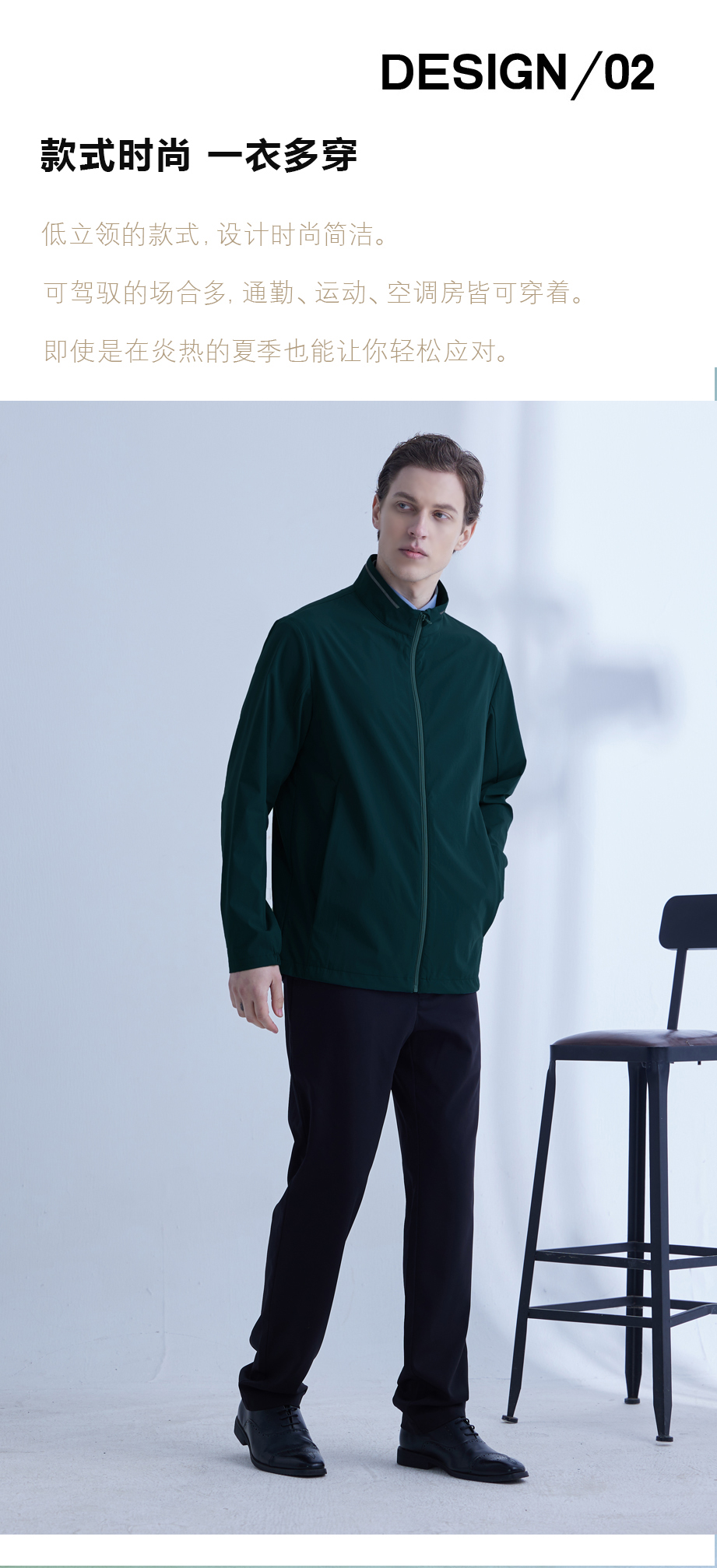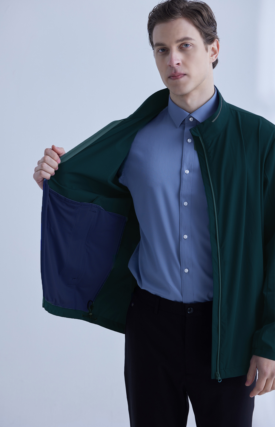| 款名: | 苍蓝色锦纶混纺四面弹速干轻便商务休闲茄克 | |||
