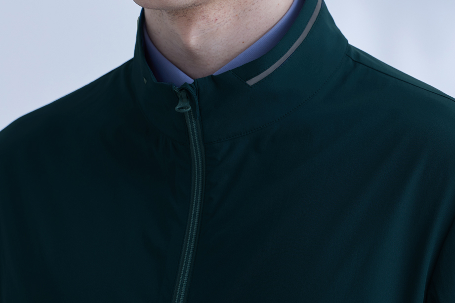 低立领的设计,更符合人体工学,更舒适更利落,领子上加了装饰实用的反光条,更美观也更实用。