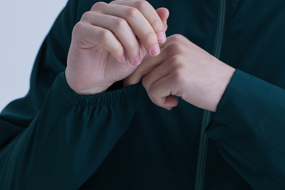 直袖头一半松紧一半压明线的设计,防风而不闷热,更合理更美观。